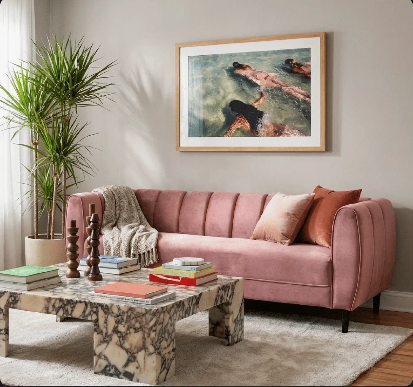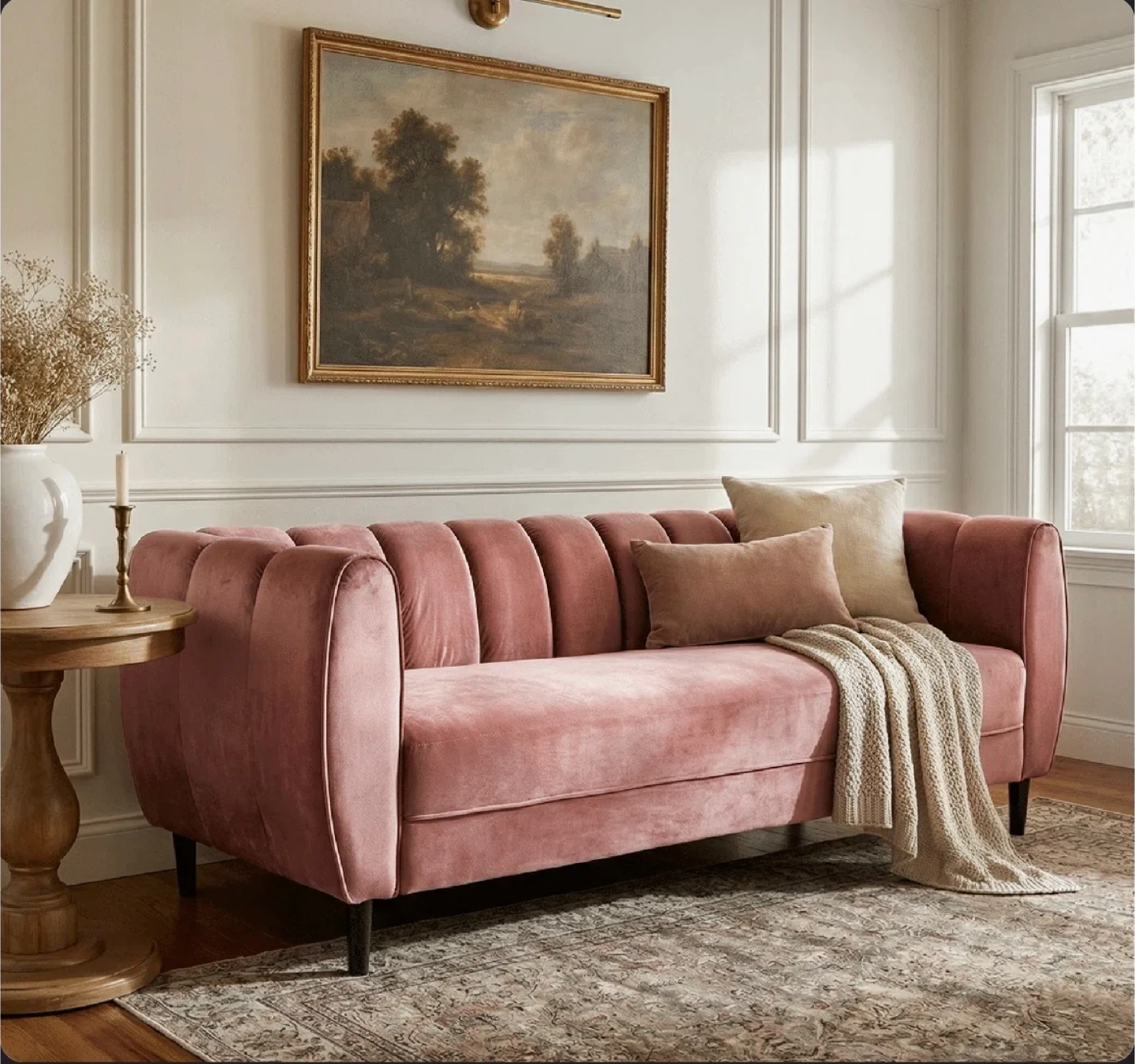 This sofa features a refined silhouette with deep channel stitching, feather-soft velvet upholstery, and sleek dark birch wood legs. Designed for both comfort and style, it elevates any living space effortlessly.