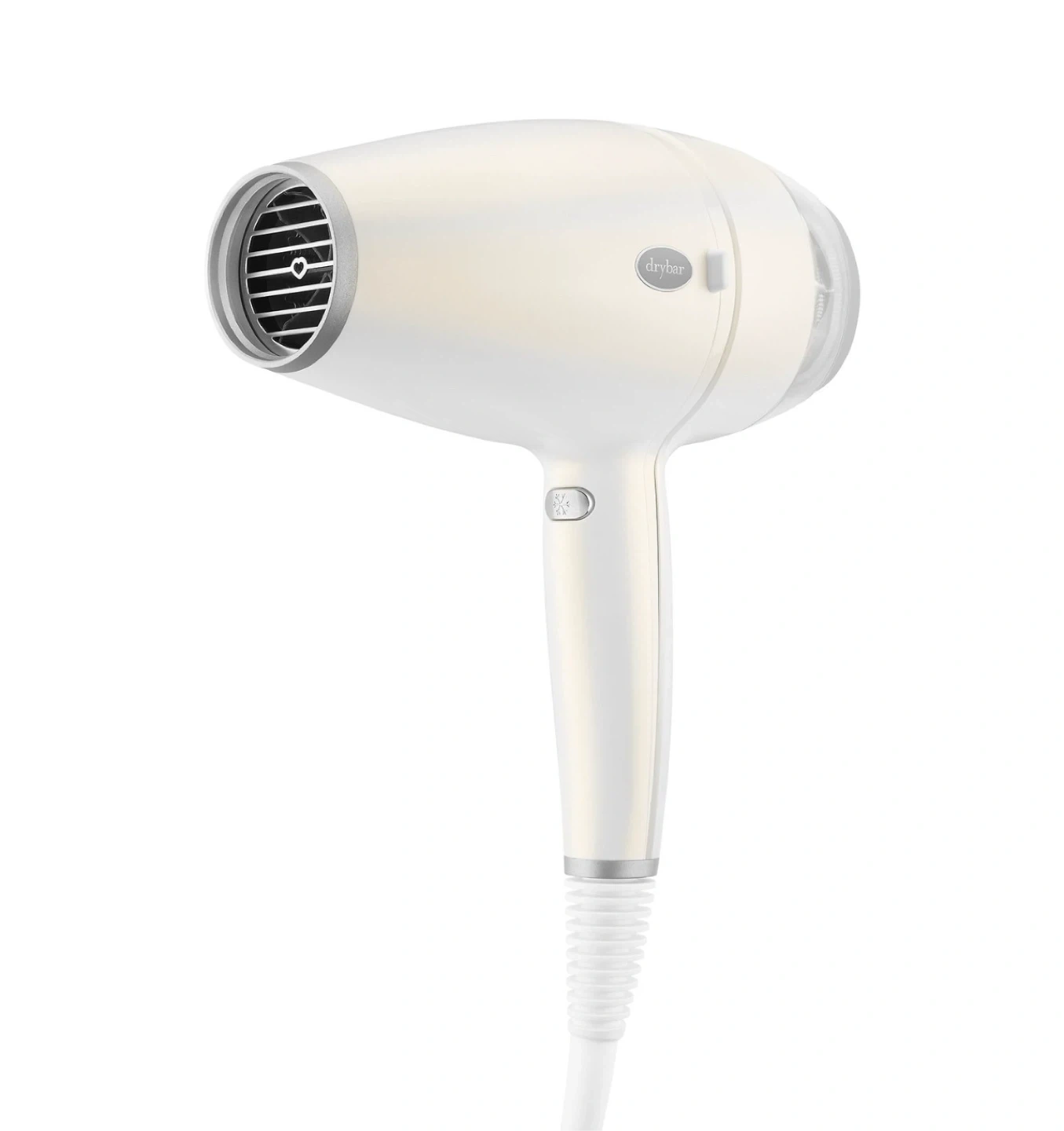 This is the Drybar Reserve Ultralight Anti-Frizz Blow-Dryer. It's designed to reduce frizz and dry hair quickly. Its ultralight design makes it easy to handle.
