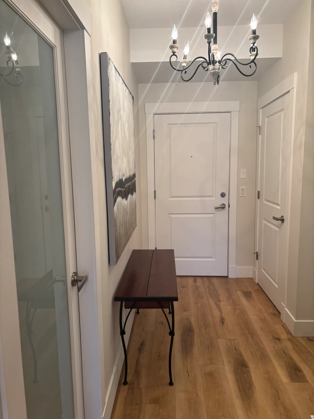 Long Wooden entrance table with black iron legs