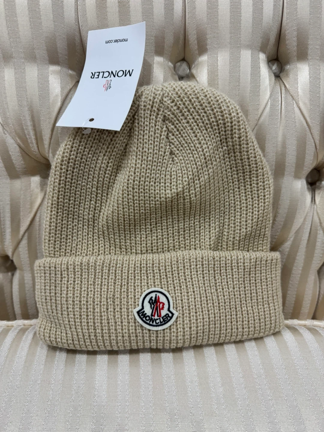 Moncler Ribbed Beanie - Beige