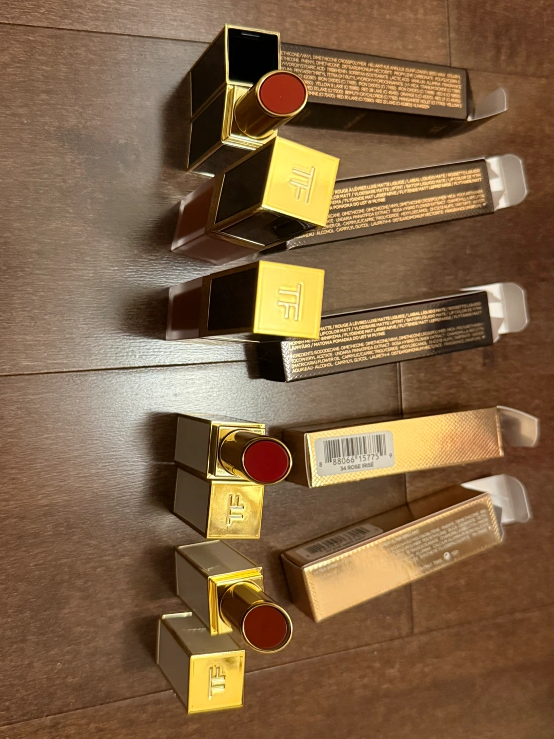 Selling Tom Ford lipsticks in various shades. All new and come with their original boxes. Available shades include Shameless, Burnt peach, Heatwave, Rose Irise, and Été Brûlant. Perfect for adding a touch of luxury to your makeup collection!