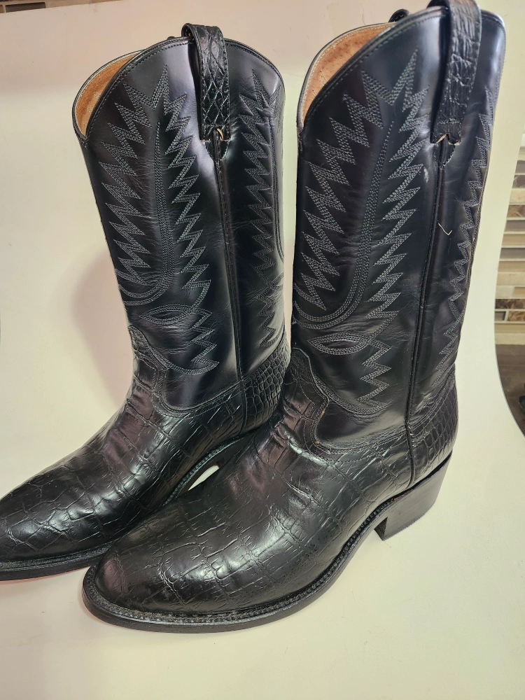 Tom Houston Black Leather Cowboy Boots