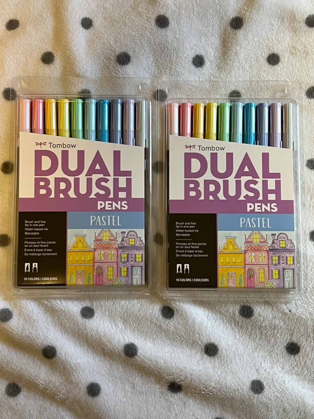 Selling two sets of Tombow Dual Brush Pens in pastel colours! Each set comes with 10 colours, perfect for blending and creating beautiful artwork. These pens feature a brush and fine tip, using water-based ink. They are brand new and ready for your next creative project! Retail $44.99 each. Take both for $75!