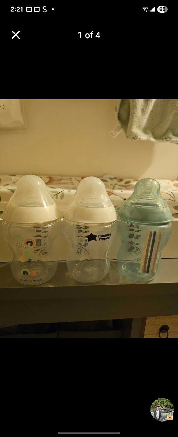 65Three New Tommee Tippee baby bottles ready for a new home! One has a white lid and rainbow design, and the other has a blue lid with stripes. They're in great condition and perfect for feeding your little one. And a pack of parents choice size 1 diaper with a new pacifier for 0 to 3 months for free