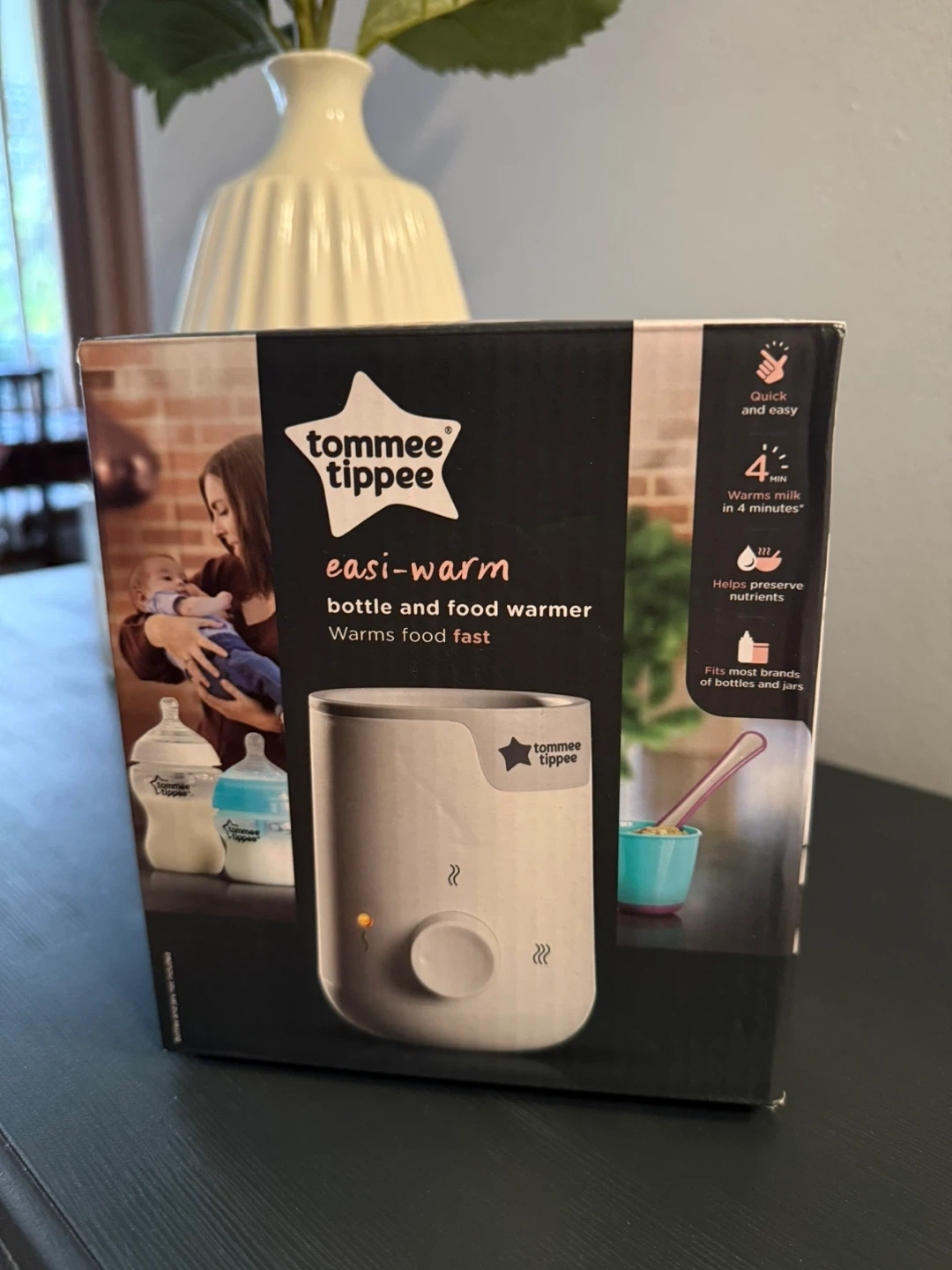 I'm selling a Tommee Tippee Easi-Warm bottle and food warmer. It warms milk in just 4 minutes and helps preserve nutrients. It's quick and easy to use and fits most brands of bottles and jars. Perfect for warming food fast!