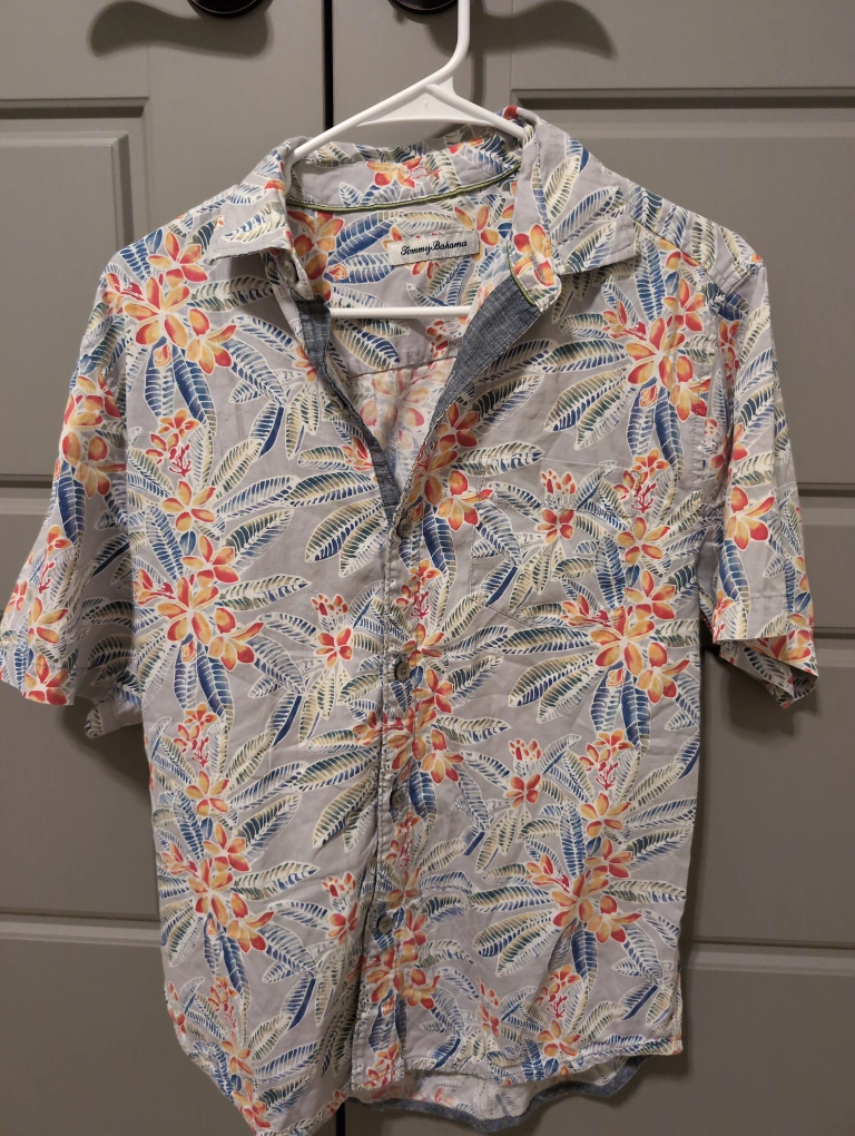 Tommy Bahama floral shirt in size small! It has a colorful floral pattern. Perfect for a casual, breezy look! Also open to all trades . Msg me!