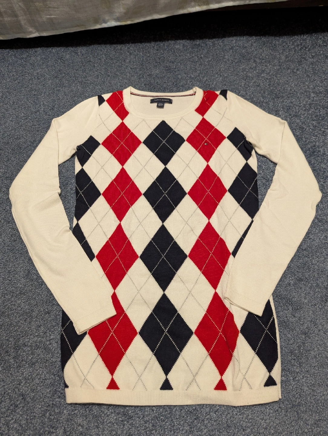 Here's a classic Tommy Hilfiger sweater with a fun argyle pattern! It's in great shape and ready for a new home. Perfect for layering or wearing on its own