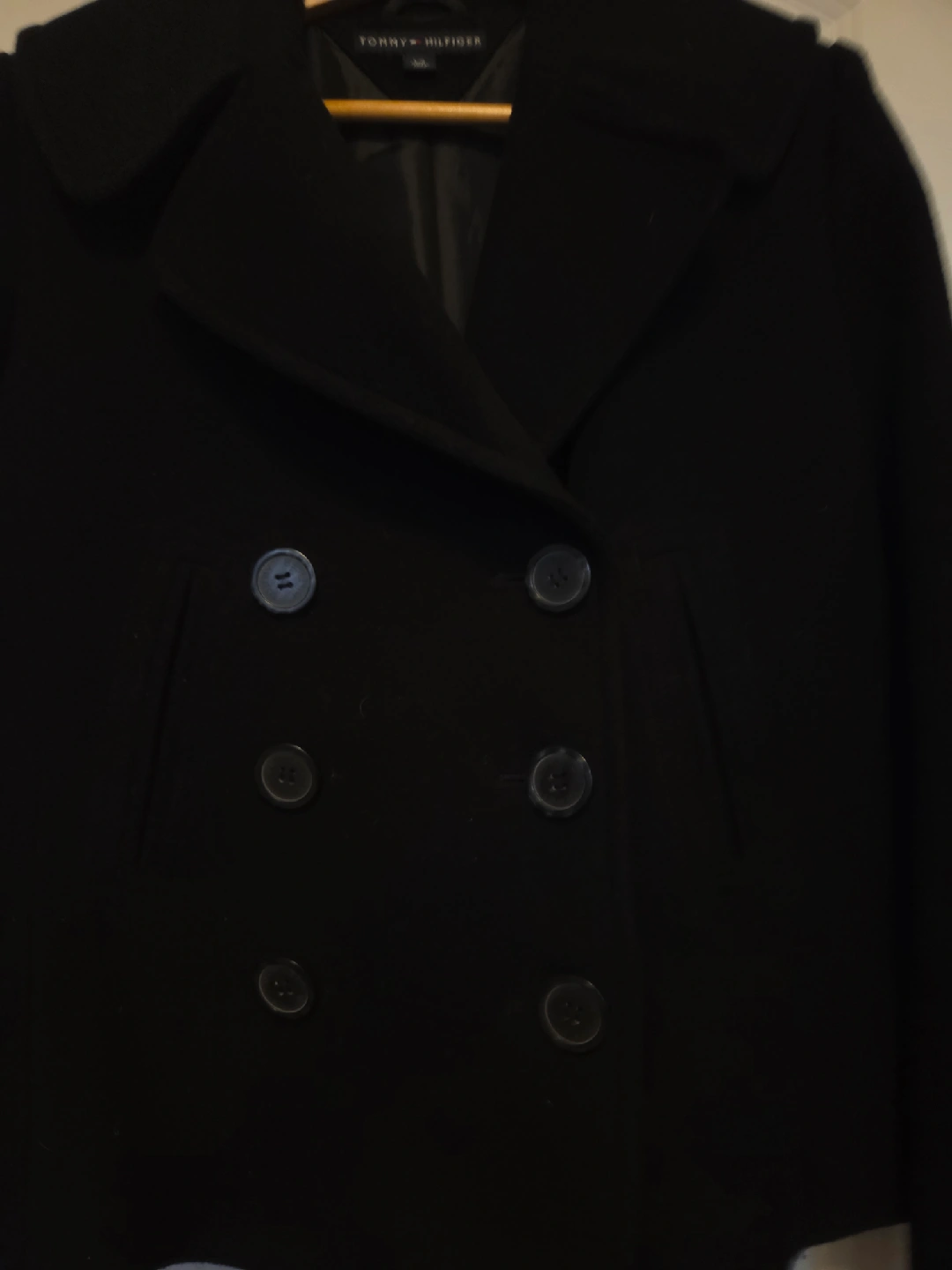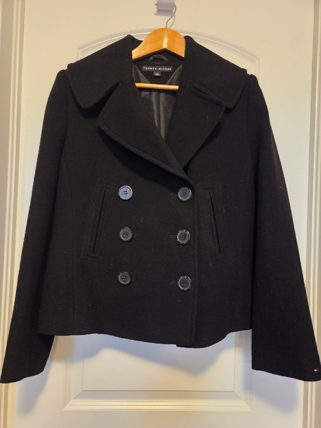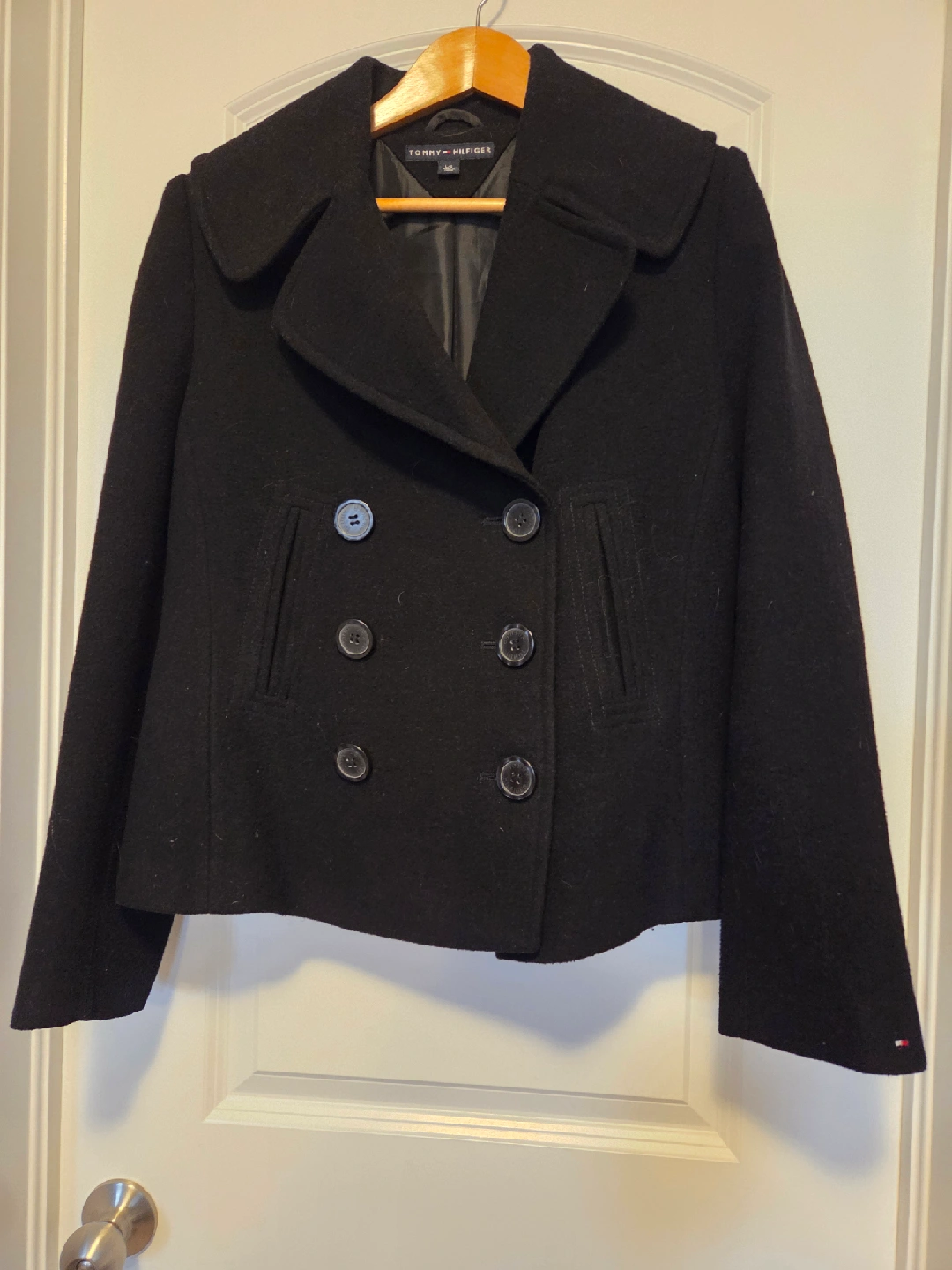 21Tommy Hilfiger black pea coat in great condition! It's a size large and made of a wool blend. Perfect for fall or winter weather Pickup west galt Cambridge