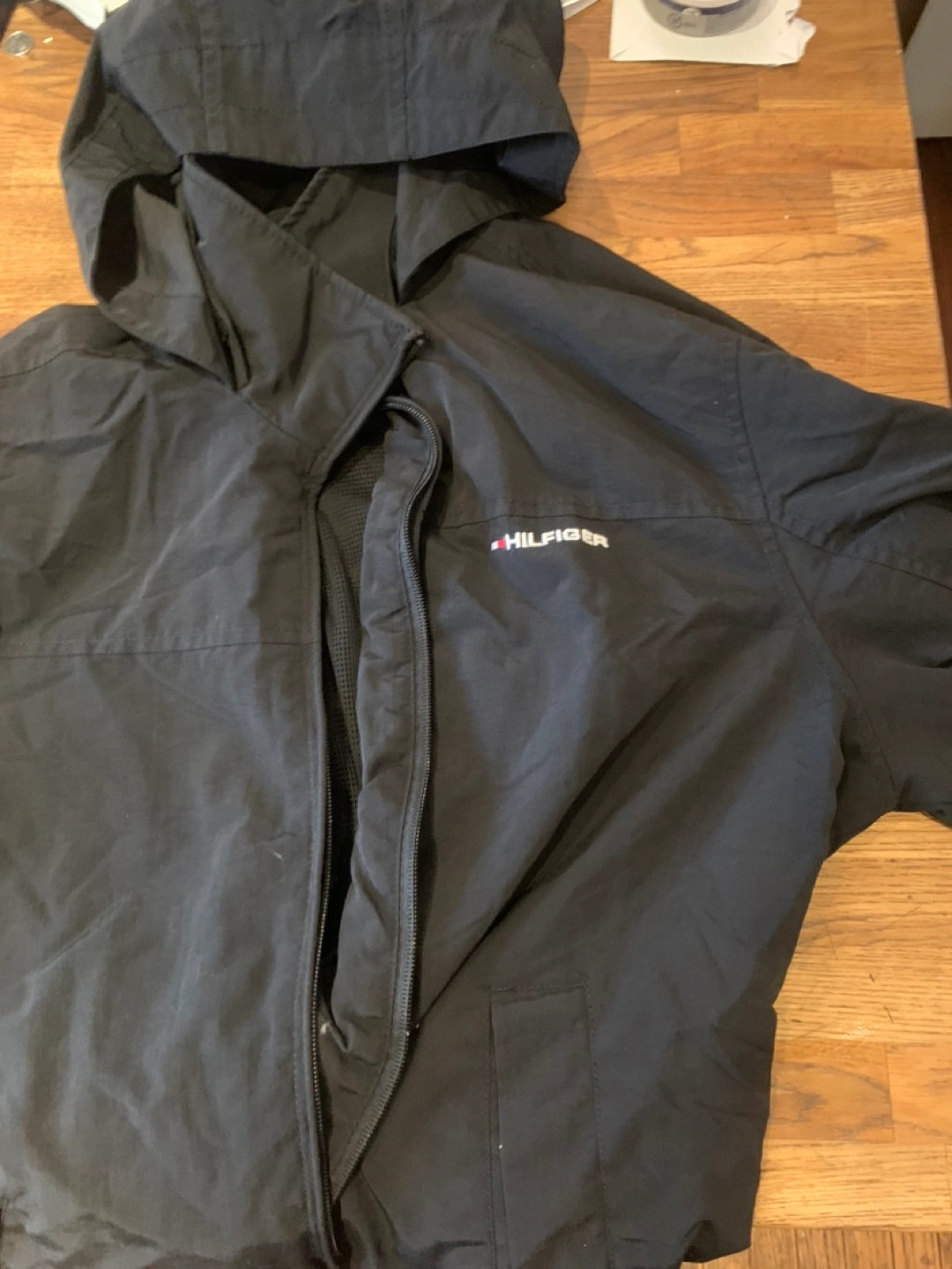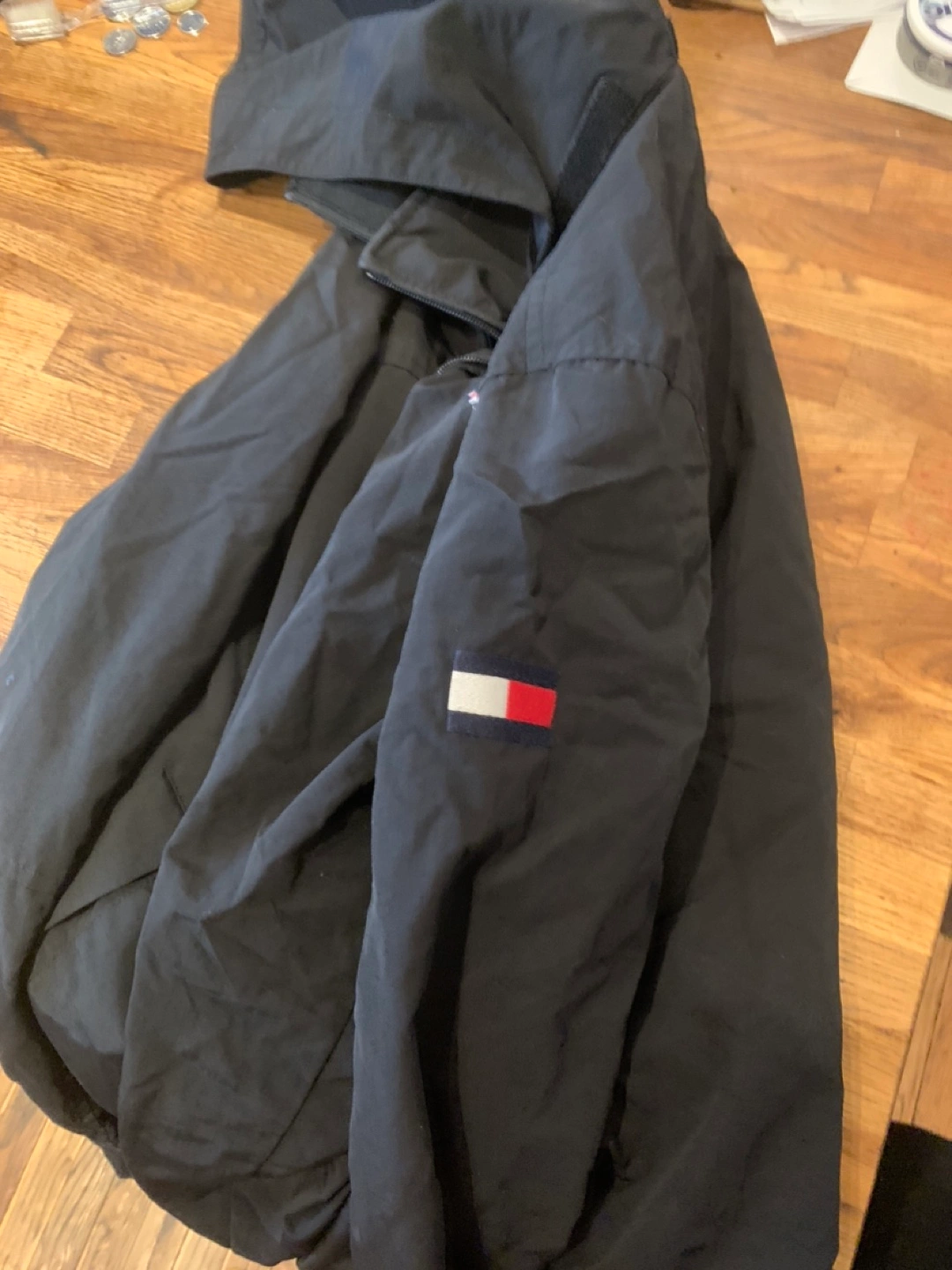 Selling a Tommy Hilfiger black jacket in size medium. It's in great condition and perfect for those cooler days