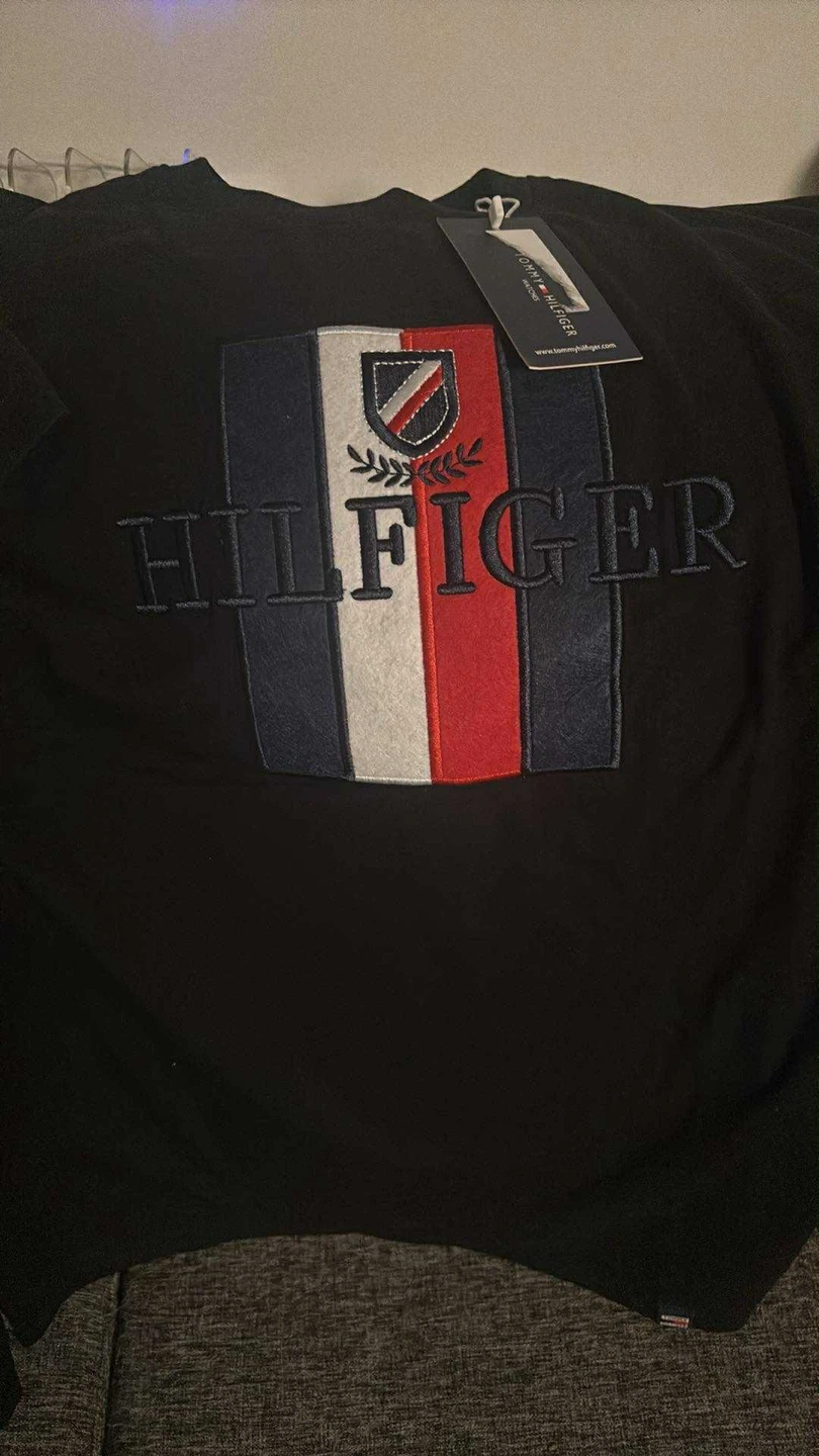 This is a black Tommy Hilfiger T-shirt. It features the classic Tommy Hilfiger logo on the front. Perfect for casual wear! $40 or best offer