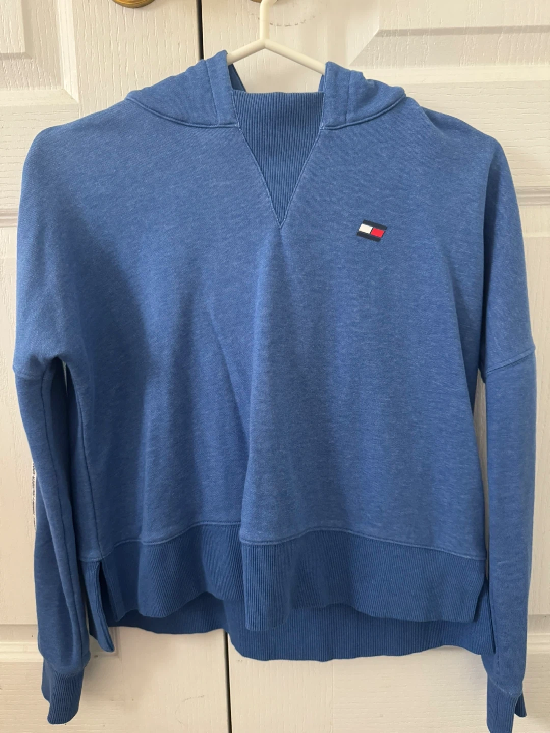 23A blue hoodie from Tommy Hilfiger. It's in great shape and ready for a new home! Size S cropped.