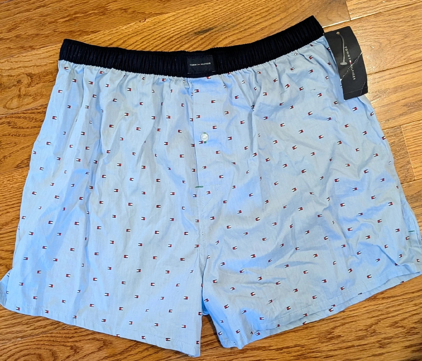 10Selling a brand new pair of Large Tommy Hilfiger boxers with the tags still attached! They feature a light blue colour with the Tommy Hilfiger logo pattern all over. A classic and comfortable choice!