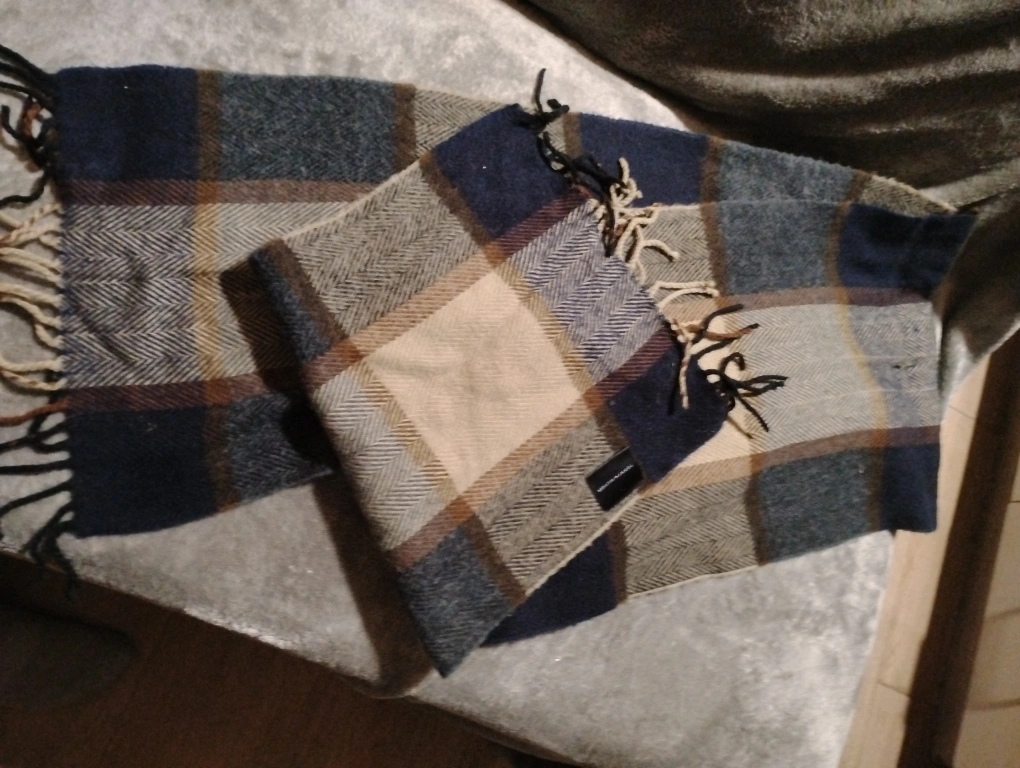 this is a very beautiful winter scarf cashmere by Tommy Hilfiger it's classic colors brown and Navy very sophisticated