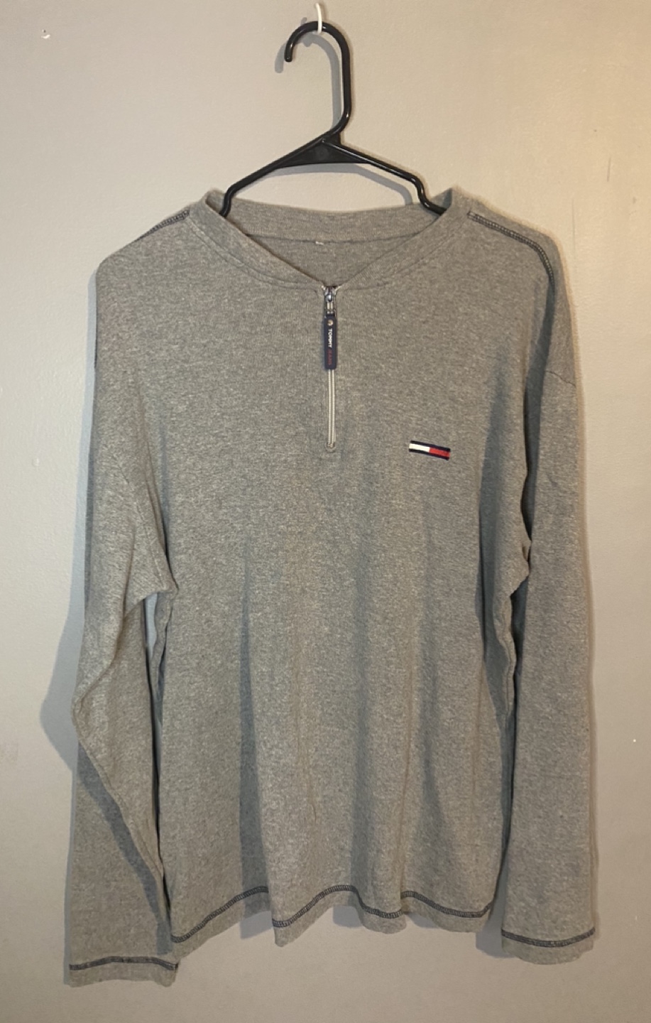85Grey Tommy Hilfiger long sleeve shirt - size medium - half zipper on neck - kinda thin **like new**