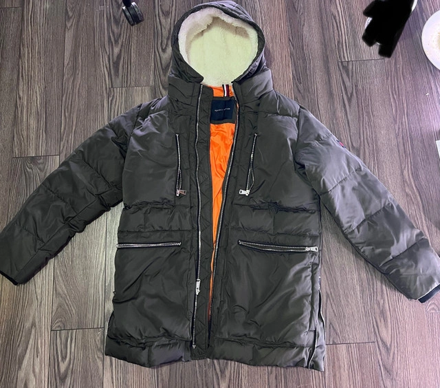 10It’s M size men’s jacket. Long length. For me it reaches my knee so pretty good and long if you’re short, if you’re not short still it’s pretty good. I USED IT BARELY SO IT IS STILL IN NEW CONDITION. Obviously all washed and cleaned.
