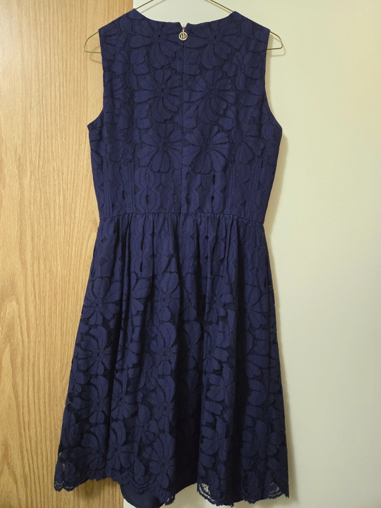58I'm selling a lovely Tommy Hilfiger dress in navy blue! It's a size 6 and features a beautiful lace overlay. Perfect for a special occasion or a night out!