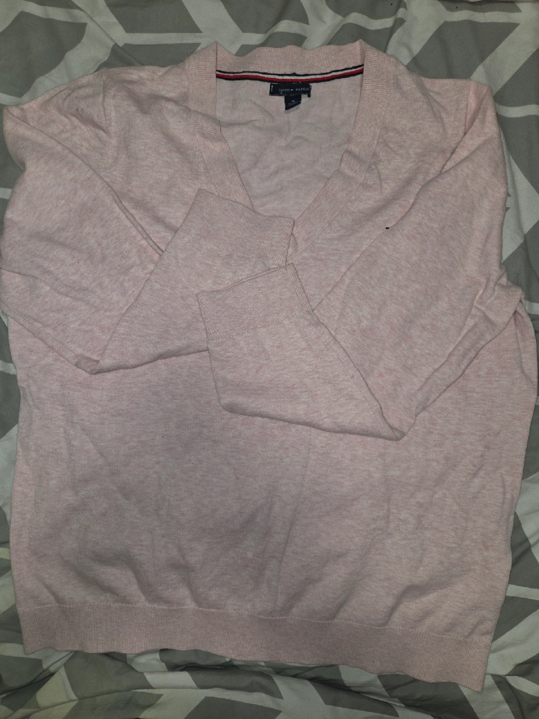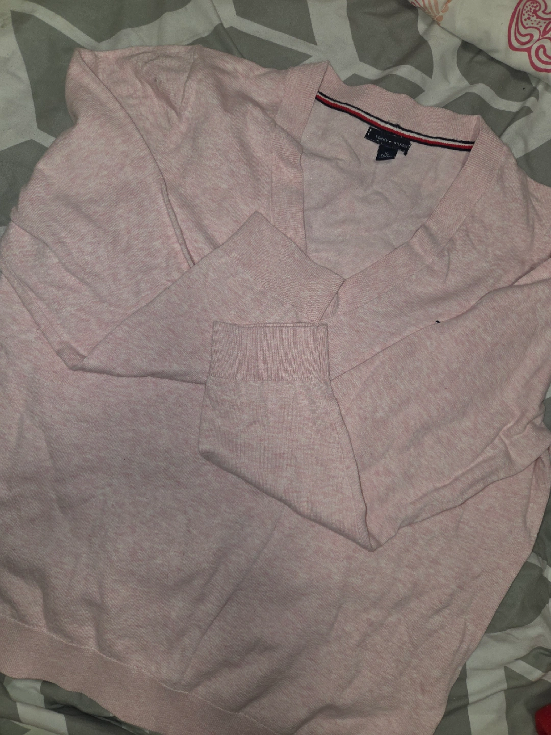 76Selling a cute Tommy Hilfiger cardigan in a lovely shade of pink! It's a size XL and in great condition. Perfect for layering or wearing on its own. It's made of a soft material, so it's super comfy too.