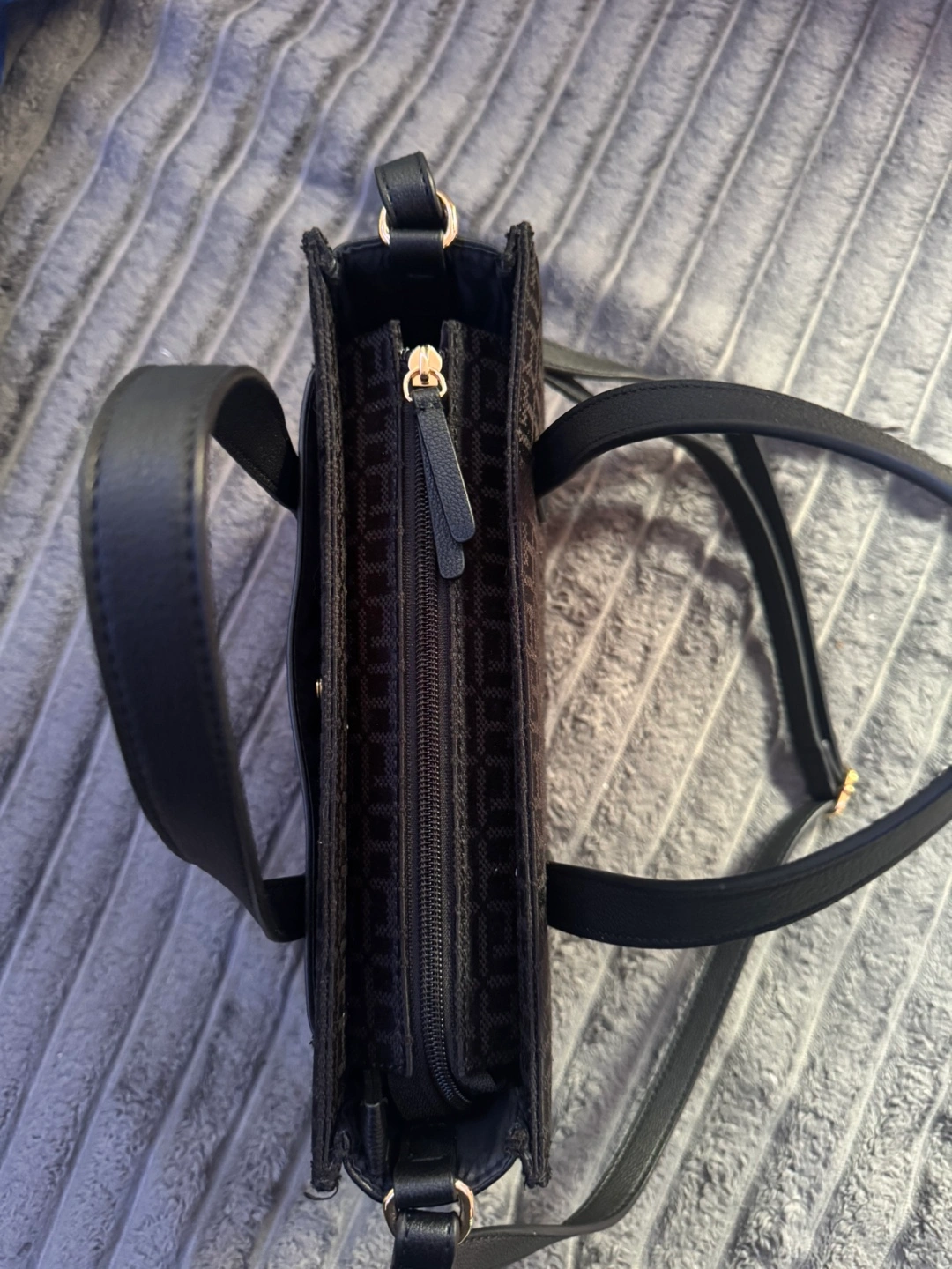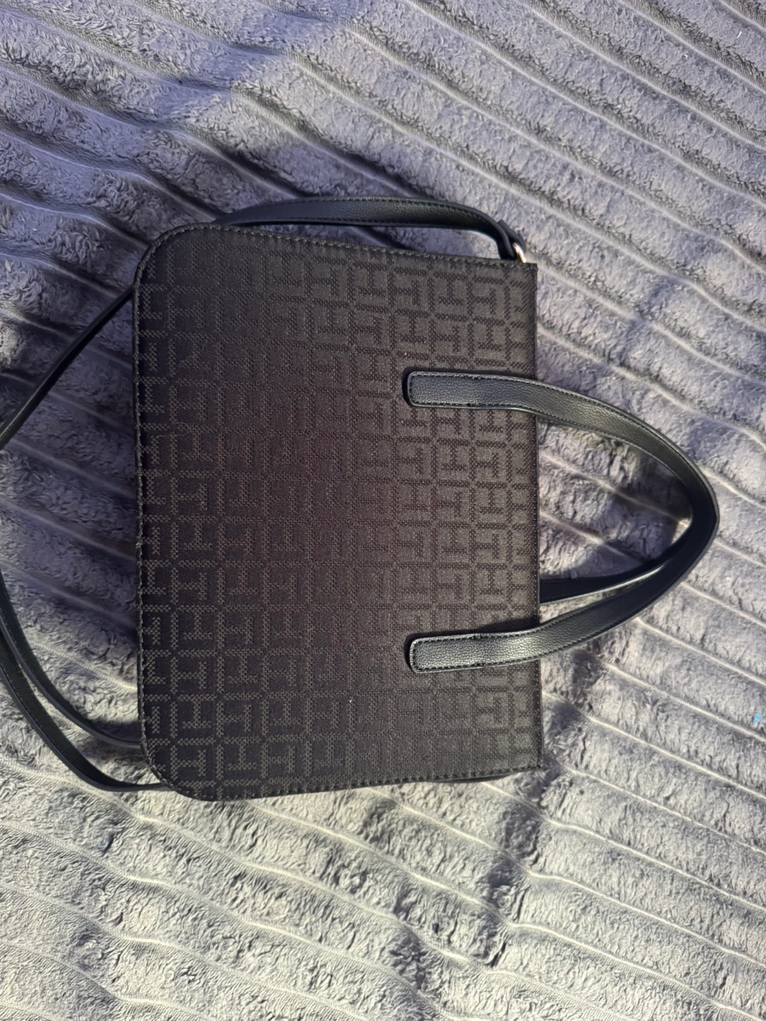 10A stylish shoulder bag. Features multiple compartments. Includes a patterned exterior and a red interior. This bag would be perfect for a day out.