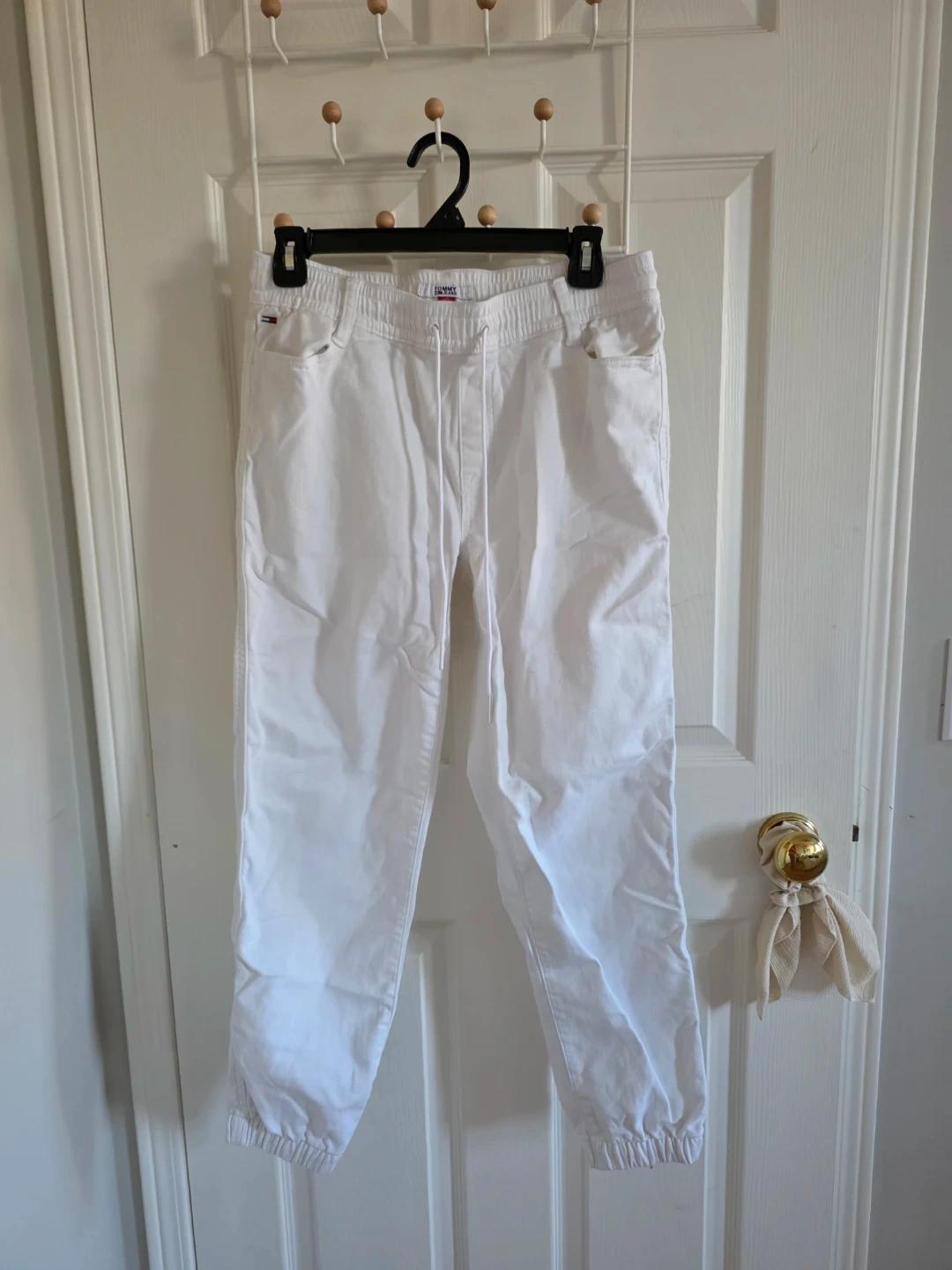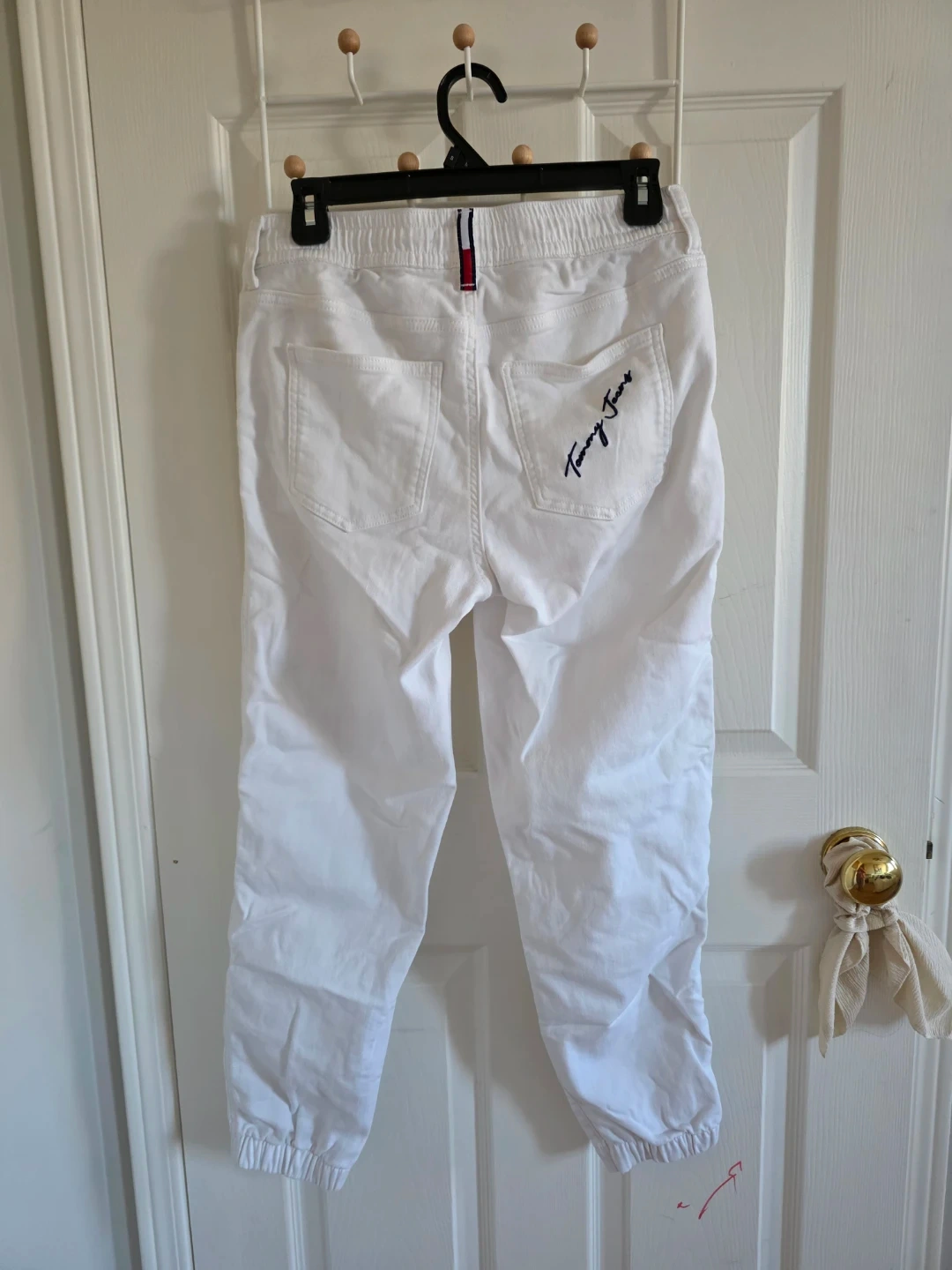 87These are a pair of white jogger pants from Tommy Hilfiger. They are in great condition and ready for a new home! Perfect for casual wear or lounging around the house
