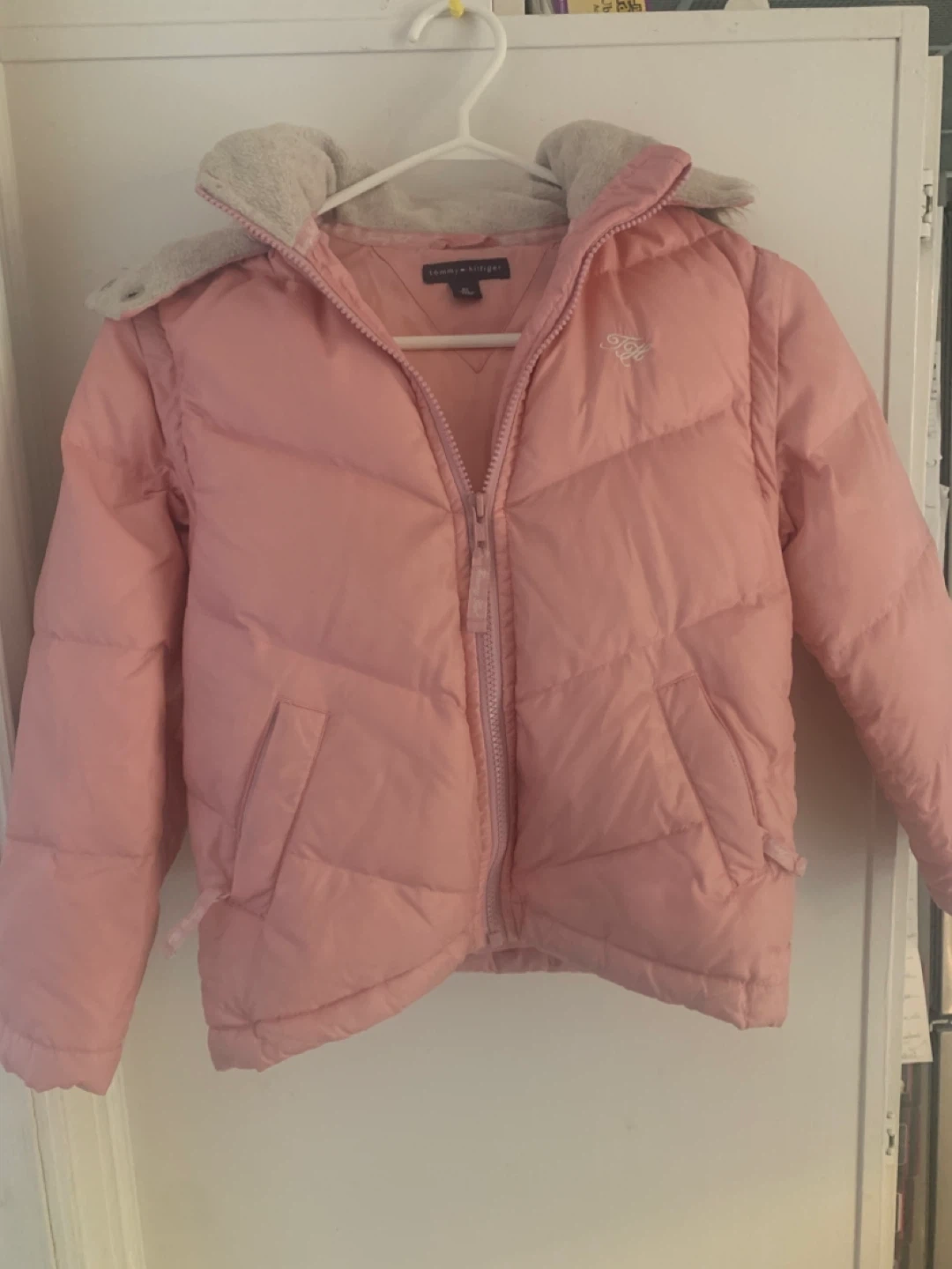 82Tommy Hilfiger Winter Jacket Pretty pink Size 6X His has genuine fur collar Very warm down filled Excellent condition No smoke/pets