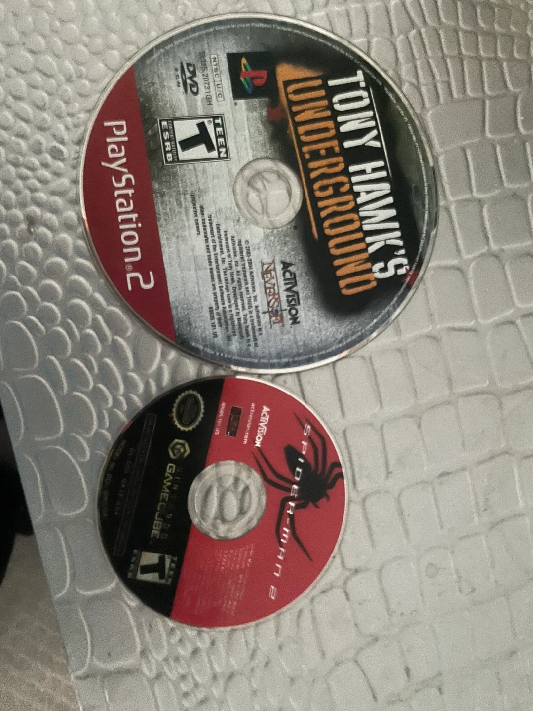 15Selling two classic games! Tony Hawk's Underground for PlayStation 2 and Spider-Man 2 for Nintendo GameCube. Both games are rated Teen by the ESRB.