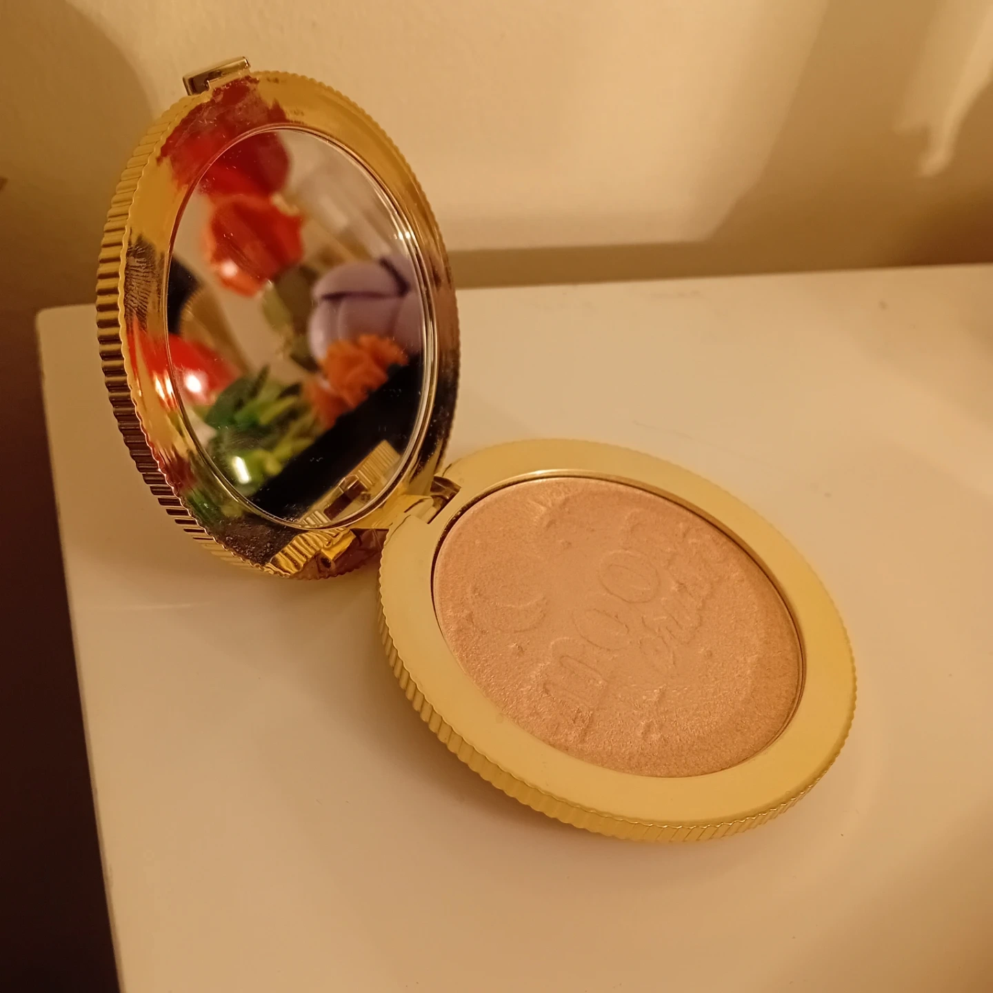 579Selling a Too Faced Moon Crush Highlighter! The compact is a beautiful pink and gold colour. The highlighter itself has a lovely embossed design. Perfect for adding a subtle glow to your makeup look!