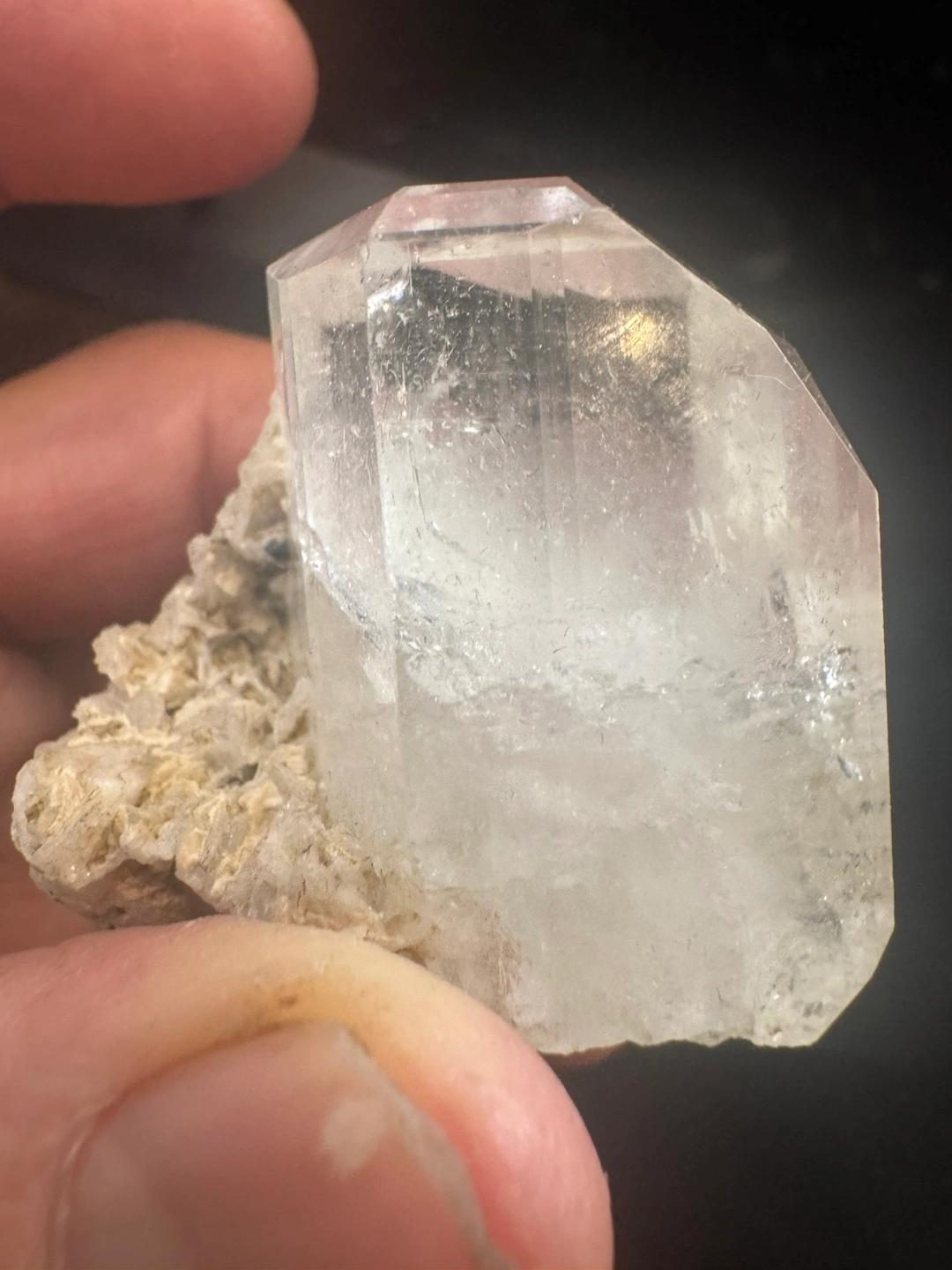 65Topaz Selling a crystal mineral specimen. It's a clear, translucent crystal attached to a matrix. Great for collectors or as a decorative piece!