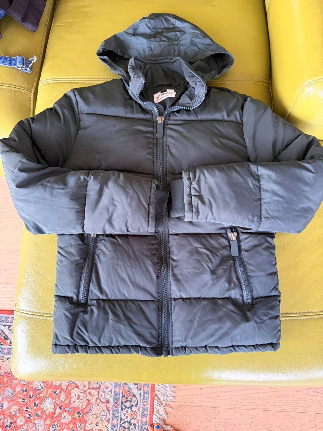 10Selling a Topman puffer jacket in size small. It's in great condition and perfect for the cooler weather. The jacket is a stylish dark grey colour and features a full zip closure and a hood to keep you warm and dry