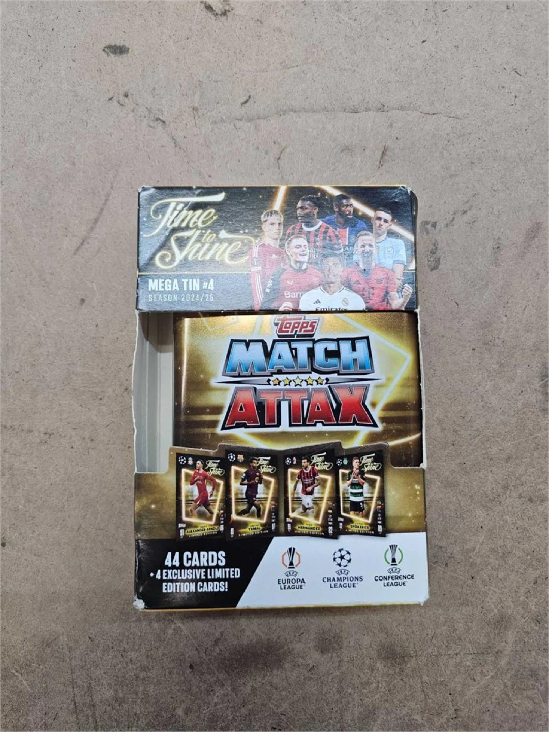 75Selling a Topps Match Attax Mega Tin #4 from the 2024/25 season! It includes 44 cards and 4 exclusive limited edition cards. Perfect for any soccer card collector!