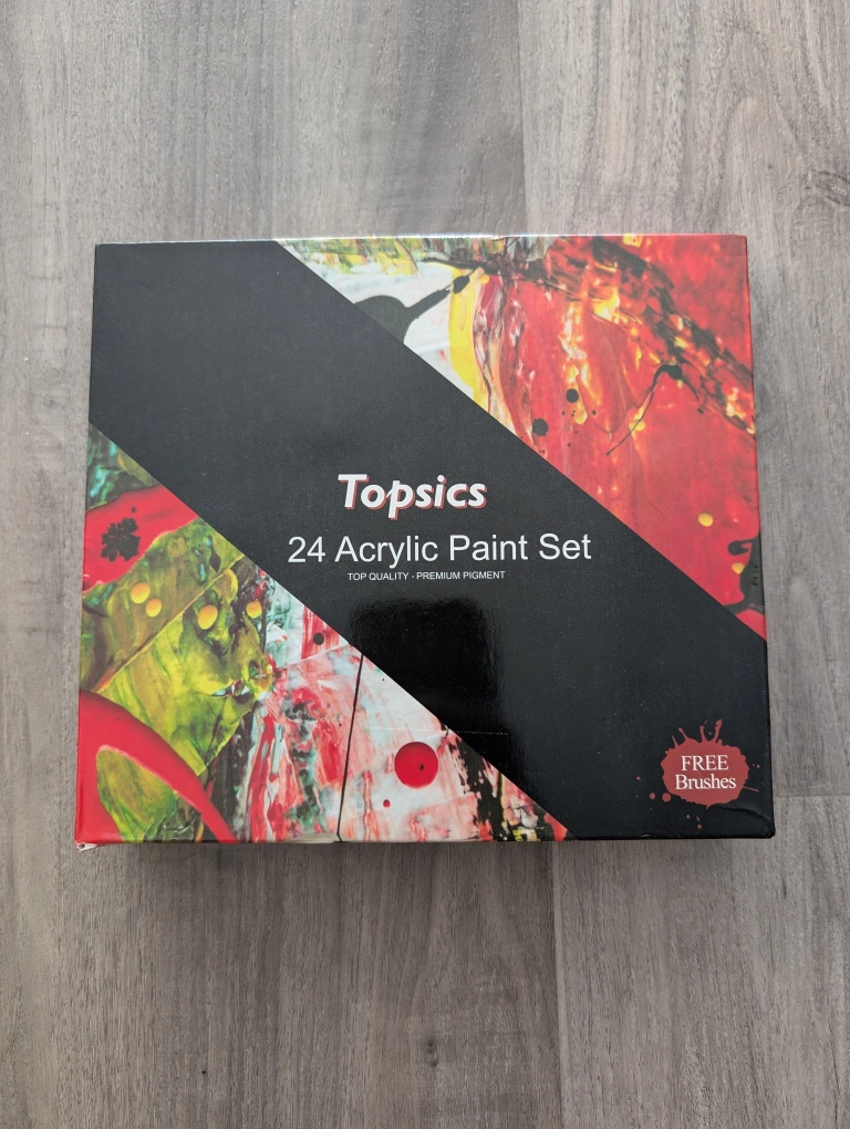 10Selling a brand new Topsics 24 Acrylic Paint Set! This set includes a variety of colours and free brushes, perfect for any artist looking to expand their collection