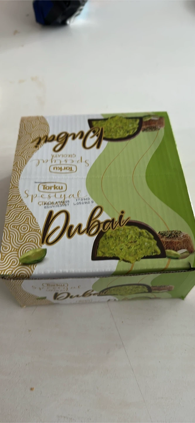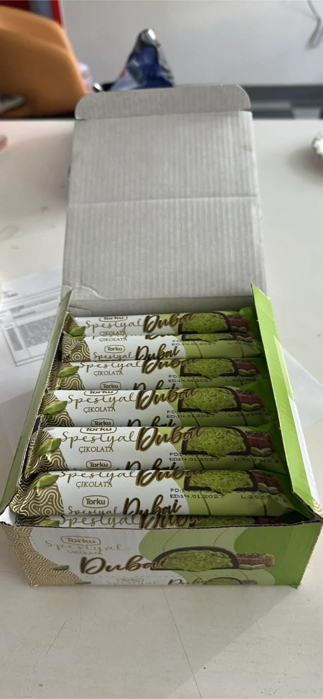 Selling a box of Torku Spesiyal Dubai chocolate 4 for $10 24 for $40