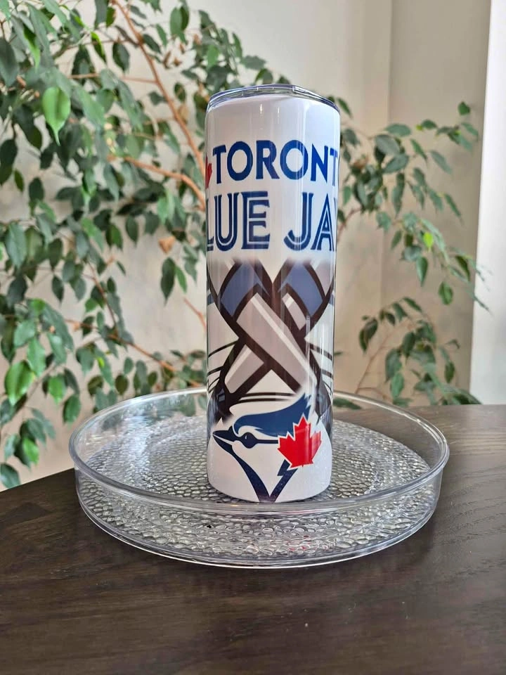 Toronto Blue Jays 20oz stainless steel tumbler. Freshly pressed from a brand new Tumbler. Pick up is on the east Hamilton mountain, Upper Kenilworth and Limeridge area.