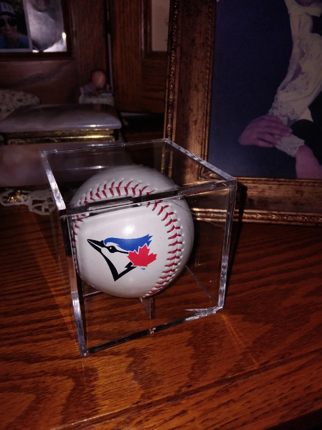 38Selling a baseball with the Toronto Blue Jays logo, displayed in a clear acrylic case. Perfect for any Jays fan!