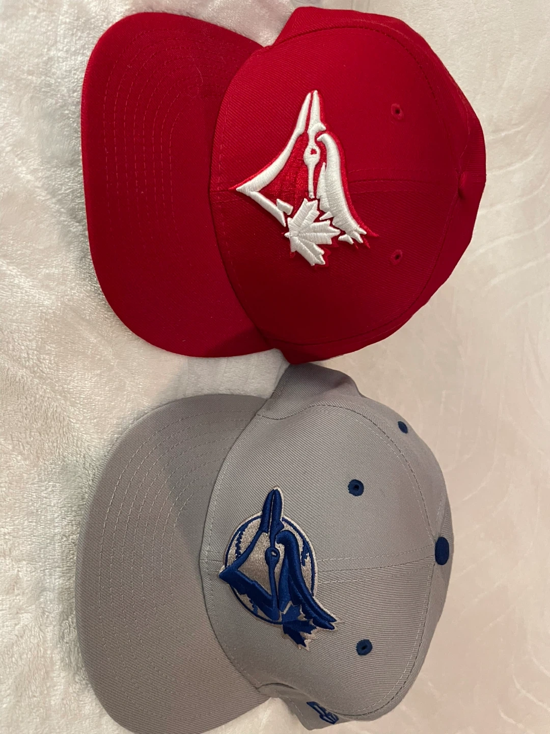 10Selling a couple of brand new Toronto Blue Jays fitted caps! One is red and the other is grey. Sizes posted in pics. New condition