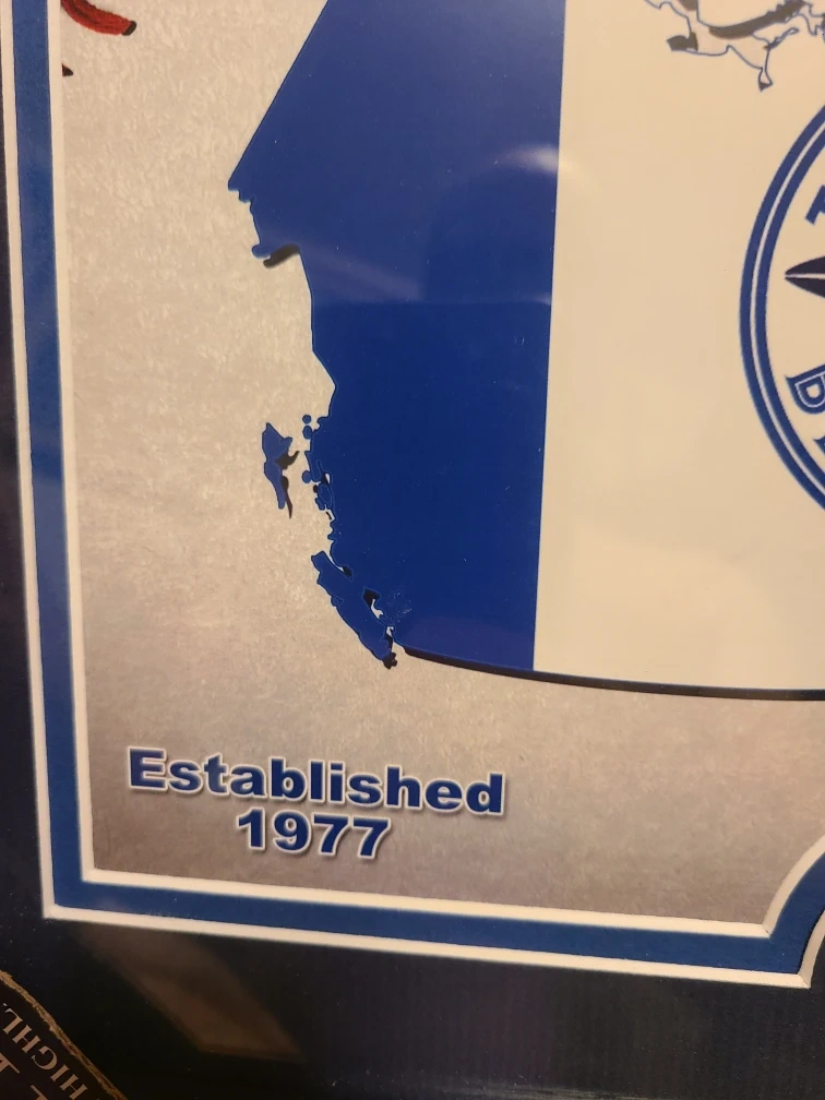 64This framed picture features the Toronto Blue Jays logo over a map of Canada. It says "This is Baseball Country" and "Established 1977". The frame is included! Gold plated Blue Jays Coin. Very hard to find.
