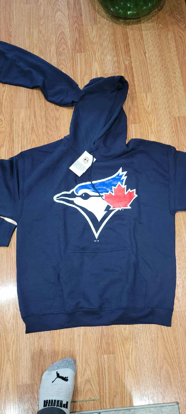 Selling a Toronto Blue Jays hoodie! It's a genuine merchandise article officially licensed by Major League Baseball. The hoodie is navy blue with the Blue Jays logo on the front. 4 adult mediums left..BRAND NEW $45 each cash only no holds pick up only ...same day pick up Bolton Grapevine rd
