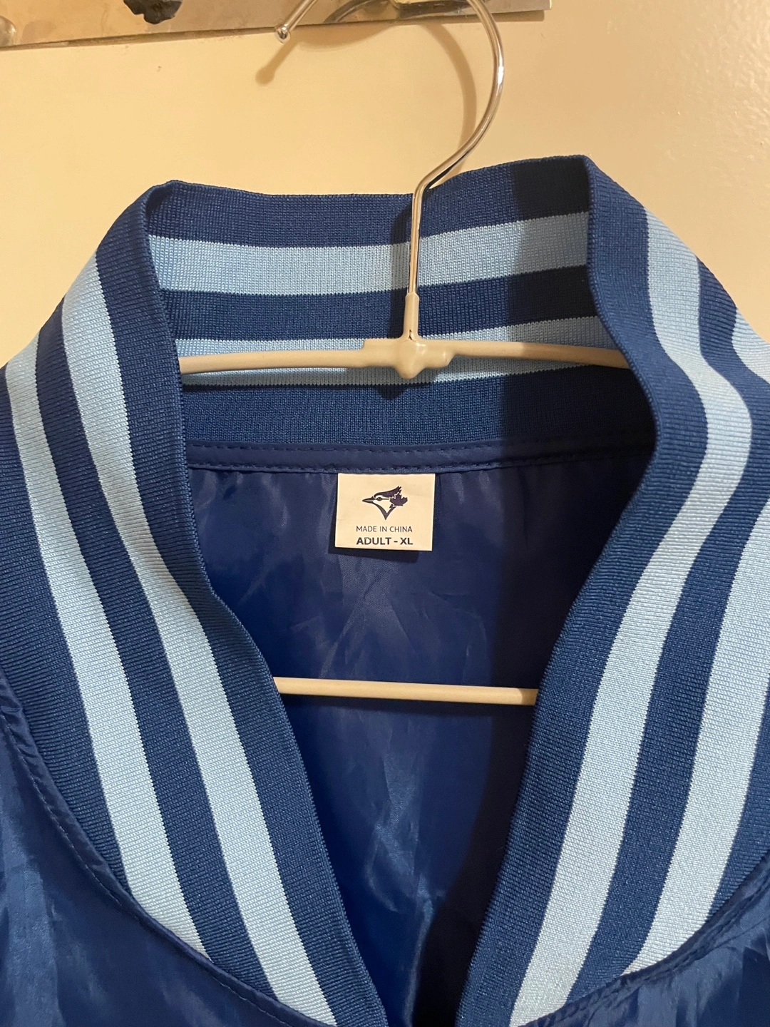 1190s MLB TORONTO BLUE JAYS STARTER DIAMOND COLLECTION SATIN BOMBER JACKET XL Giveaway on August 27, 2022 Brand new, never worn. -Size: XL/ Length 72cm / Width 73cm / Shoulder width 61cm / Sleeve length 63cm. -Material: 100% polyester.