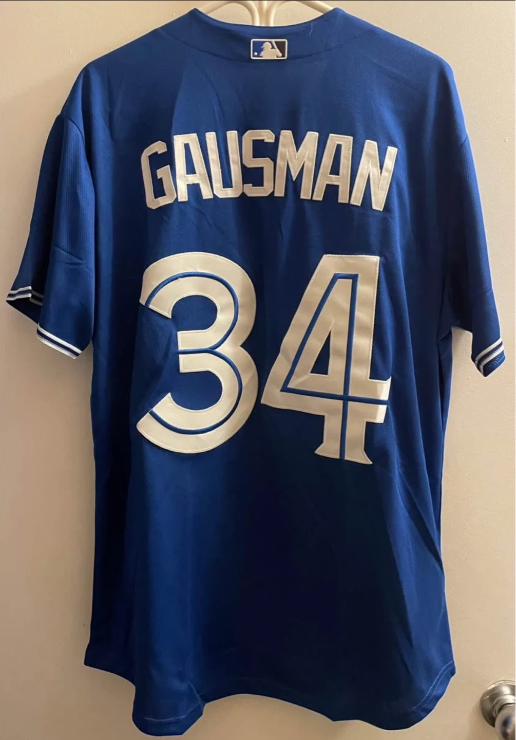 Brand New Mens TORONTO BLUE JAYS MLB STITCHED Blue Baseball Jersey GAUSMAN #34 Size LARGE $40 Cross posted Pick up in the Mapleview mall area in Burlington (Maple/Fairview)