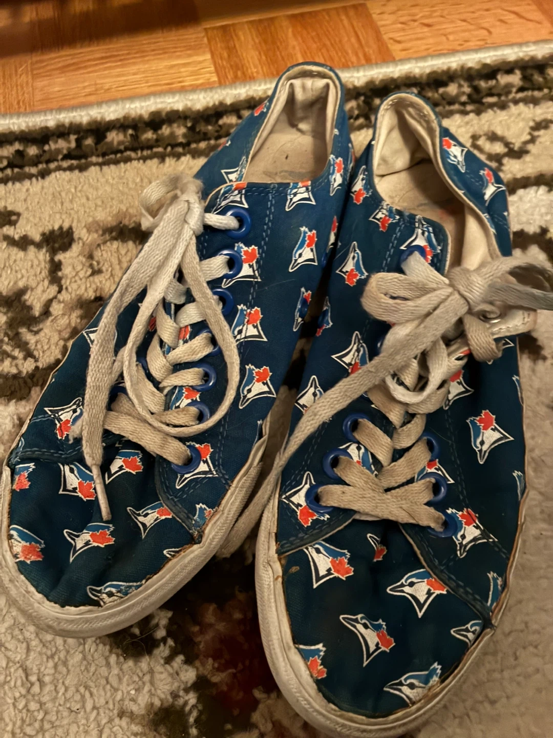 Selling a pair of Toronto Blue Jays sneakers. They show some wear and tear, as you can see in the photos, but still have lots of life left in them! size 7 women’s