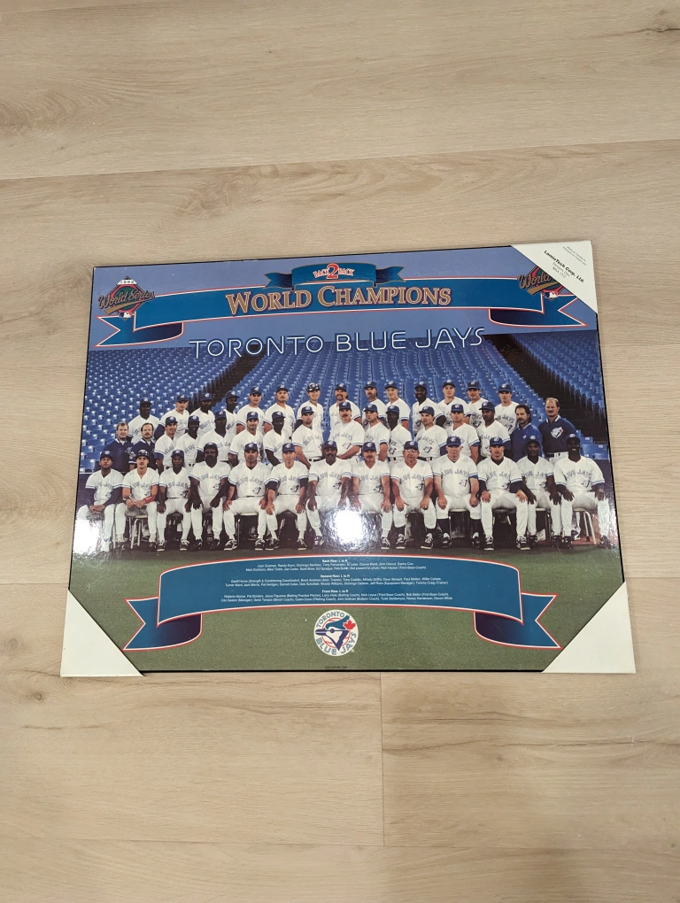 Framed picture of the Toronto Blue Jays, celebrating their World Championship win! A great piece for any Jays fan or sports memorabilia collector