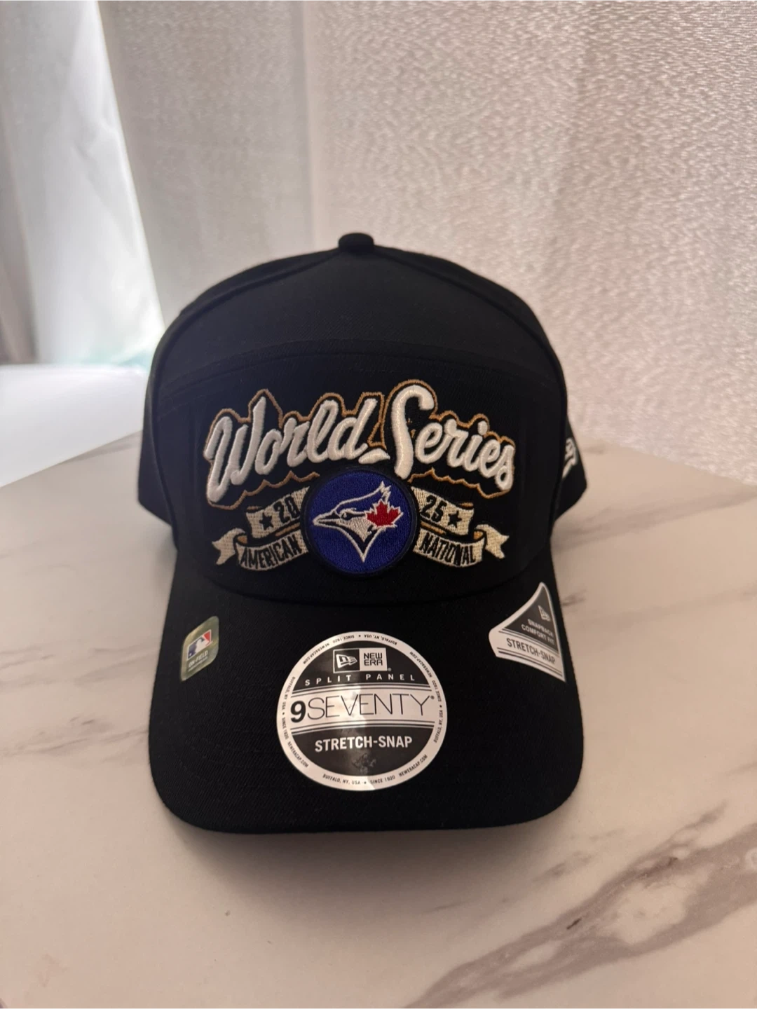 76Selling a Toronto Blue Jays World Series New Era 9Seventy stretch-snap hat. It's in great condition and features the League Champs logo on the back. Perfect for any Blue Jays fan!