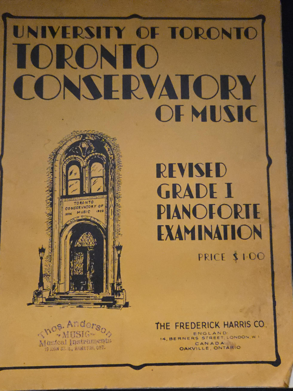 Selling a vintage copy of the Toronto Conservatory of Music's Revised Grade 1 Pianoforte Examination. It's a piece of Toronto's musical history, published by The Frederick Harris Co. in Oakville, Ontario. It's a great collectors item.