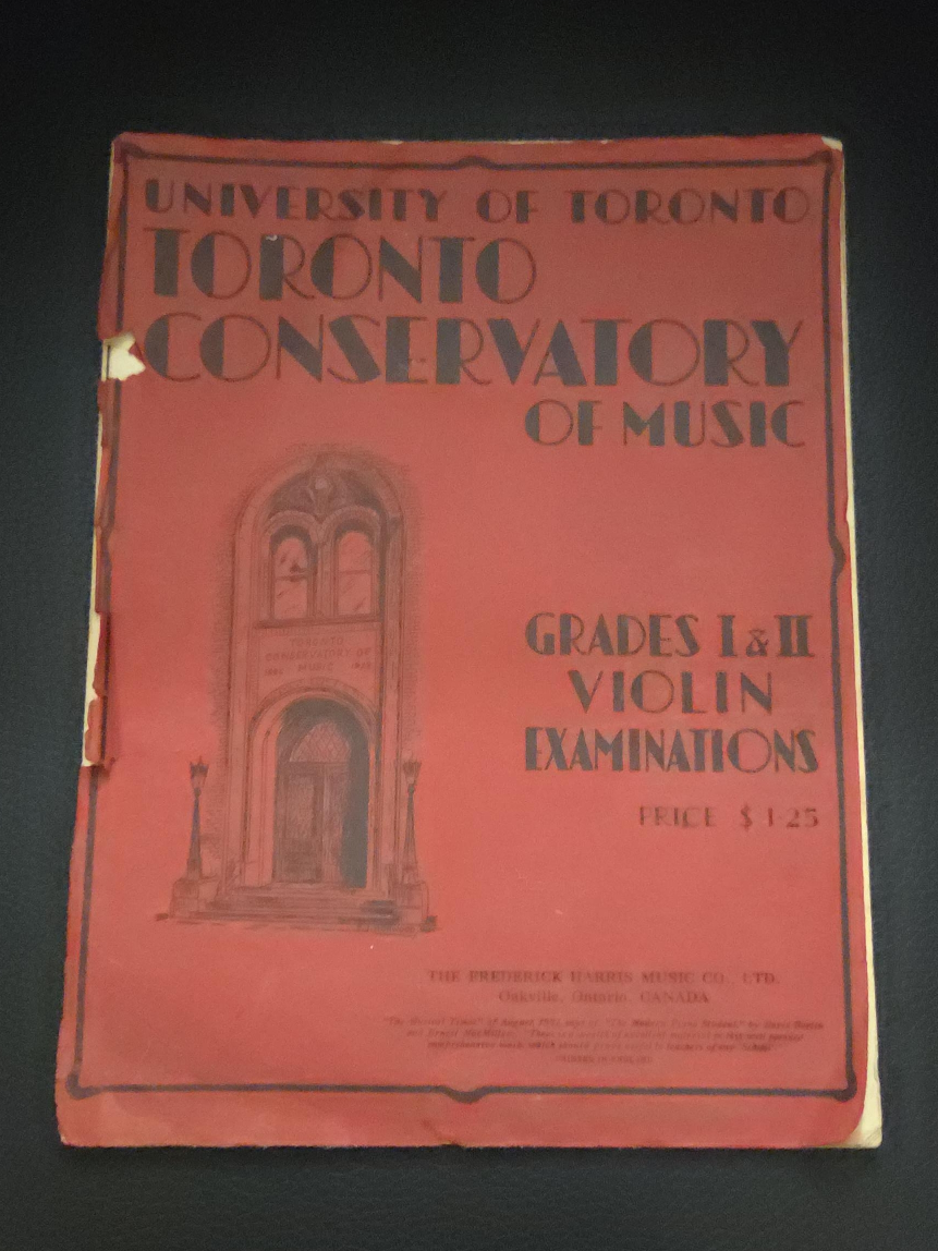 Selling a Toronto Conservatory of Music Grades I & II Violin Examinations book. Shows some signs of use.