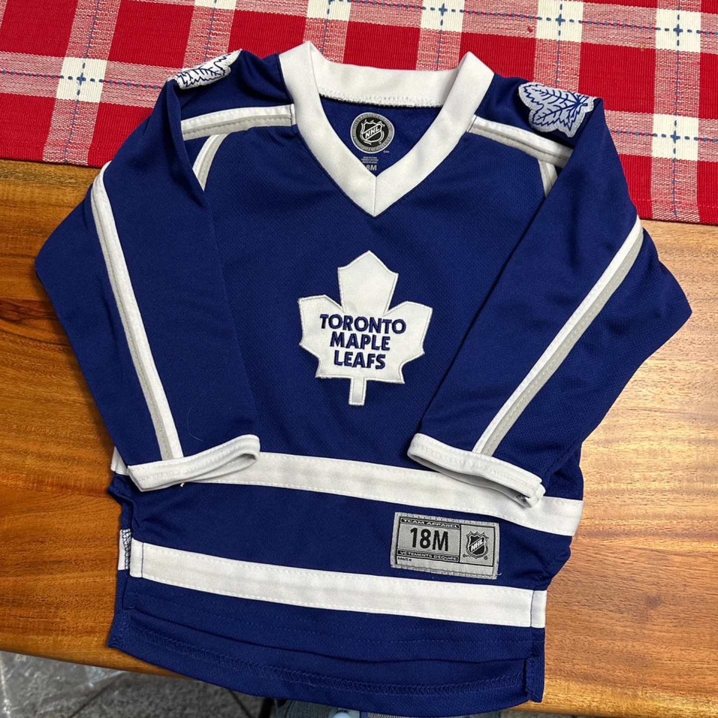 Adorable Toronto Maple Leafs baby jersey in size 18M! Perfect for your little hockey fan. The jersey is in great condition and features the classic Leafs logo and colours