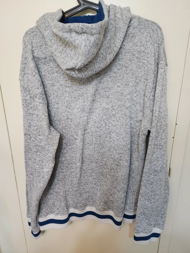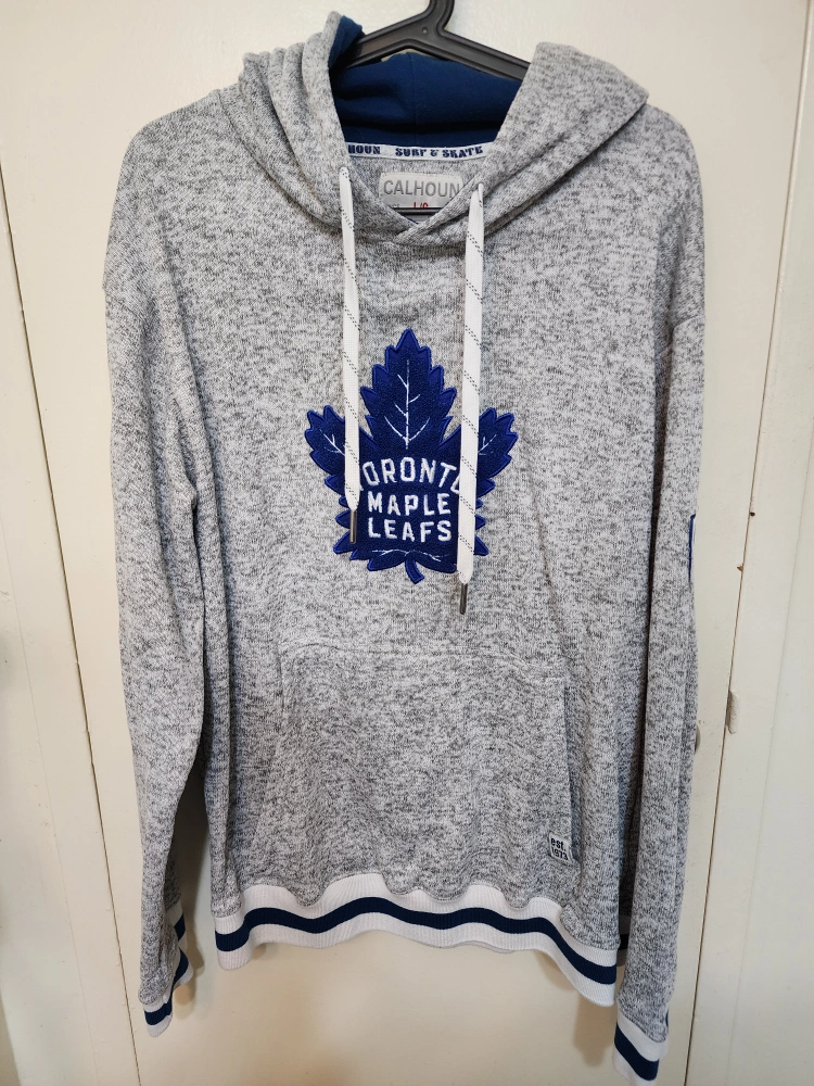 Used. Grey Toronto Maple Leafs hoodie. Features embroidered logo and ribbed cuffs. Calhoun branding on hood. Men's large.