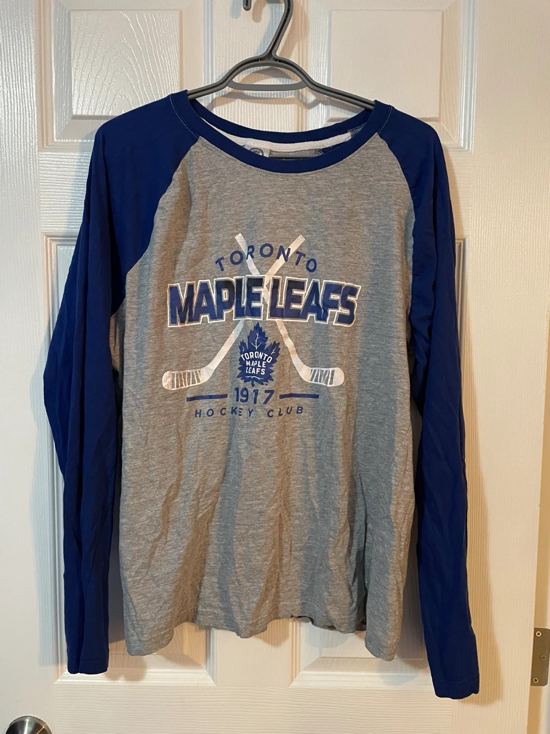 119Selling a Toronto Maple Leafs long sleeve shirt. It's an XL size and in great condition. The shirt is a raglan style with blue sleeves and a grey body, featuring the classic Maple Leafs logo. Perfect for any hockey fan! Never Worn - brought back from Toronto but it was the wrong size. Pick up only - Marlborough Park NE