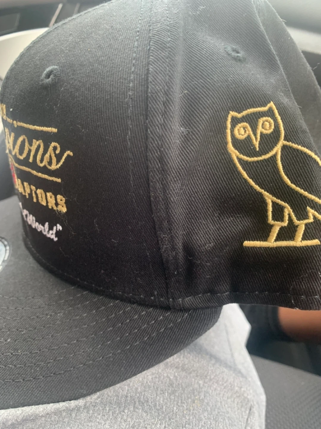 79Selling a Toronto Raptors 2019 Champions snapback hat by New Era. It's black with gold embroidery. The side has the OVO owl logo. Great for any Raptors fan!
