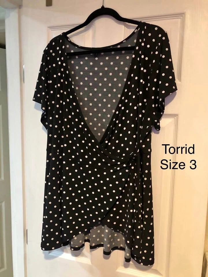 952This top has a wrap look in the front, creating a v neckline. It drapes nicely, and would pair well with jeans or dress pants. Cash only please. Crossposted.