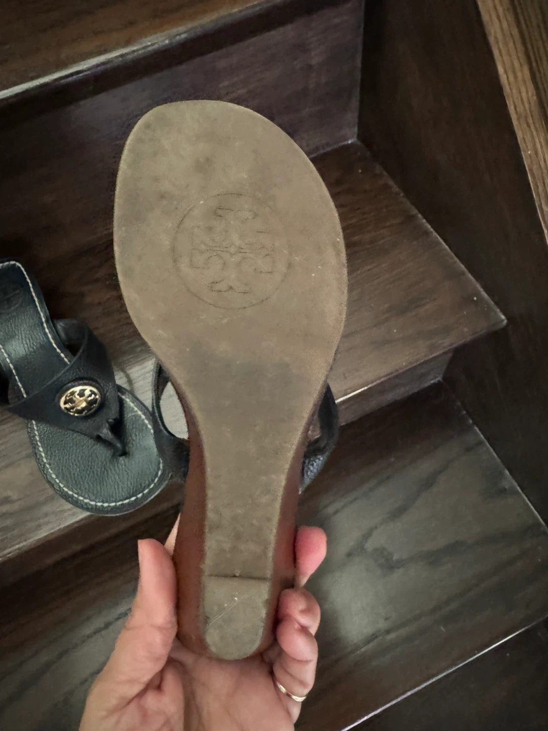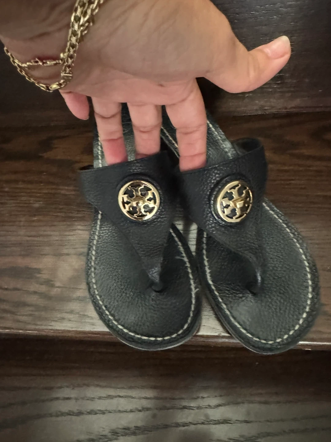 These Tory Burch sandals are a stylish addition to any wardrobe! They are made of black leather and feature the iconic Tory Burch logo. Size 8