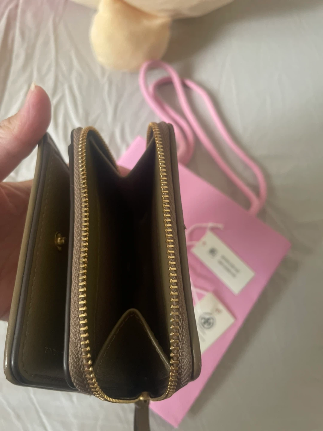Selling a gently used Tory Burch Kira Chevron Bi-Fold Wallet. It's in great condition and features a stylish chevron pattern. The colour is a beautiful sandpiper. Originally retailed for $198 USD. A perfect compact wallet for everyday use! ‼️Some sign of wear on edges/bifold area Whitehorn ne